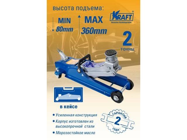 Домкрат подкатной низкопрофильный 2 т. (кейс) 80-360 мм KRAFT KT 820011 KRAFT Kraft KT820011