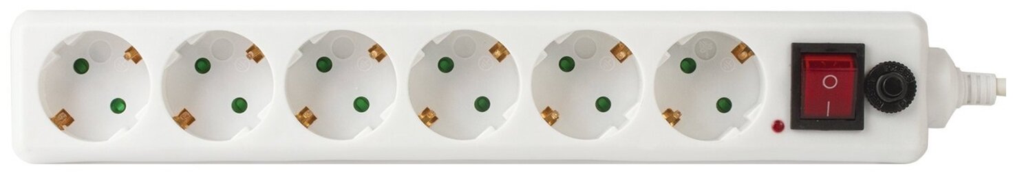 Сетевой фильтр Sonnen U-365, 6 розеток, с заземлением, выключатель, 10 А, 5 м, белый 511427