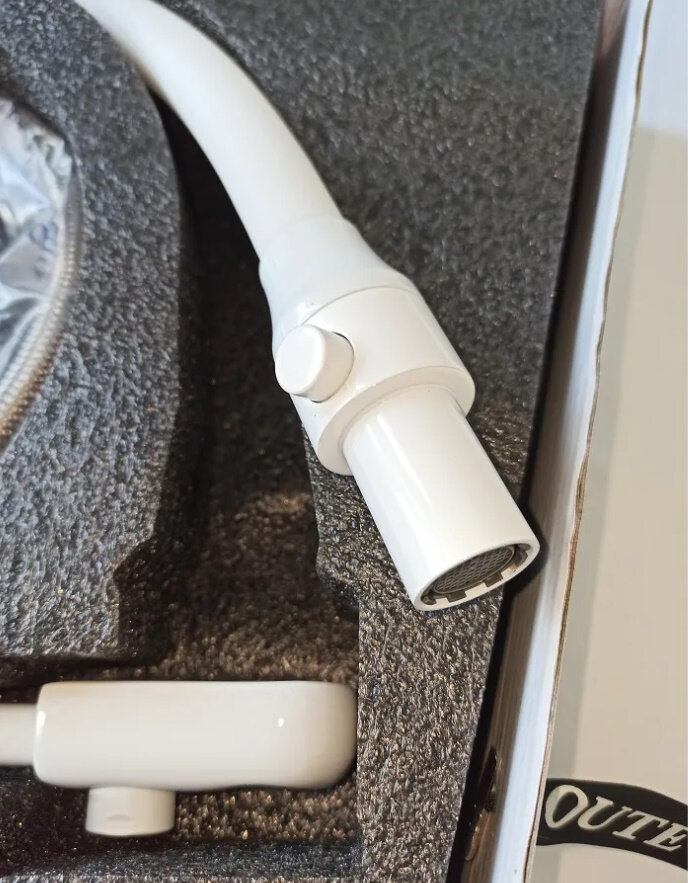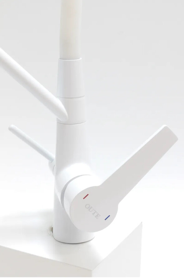 Смеситель для кухни OUTE белый, однорычажный, с дополнительным выводом под фильтр питьевой воды, с гибким изливом.