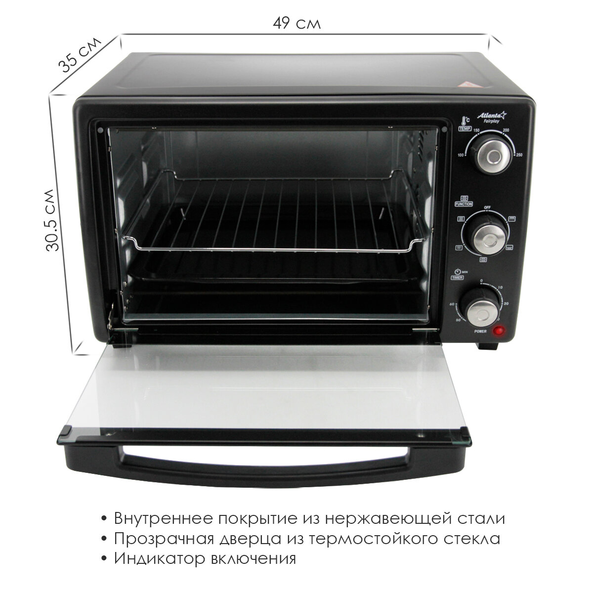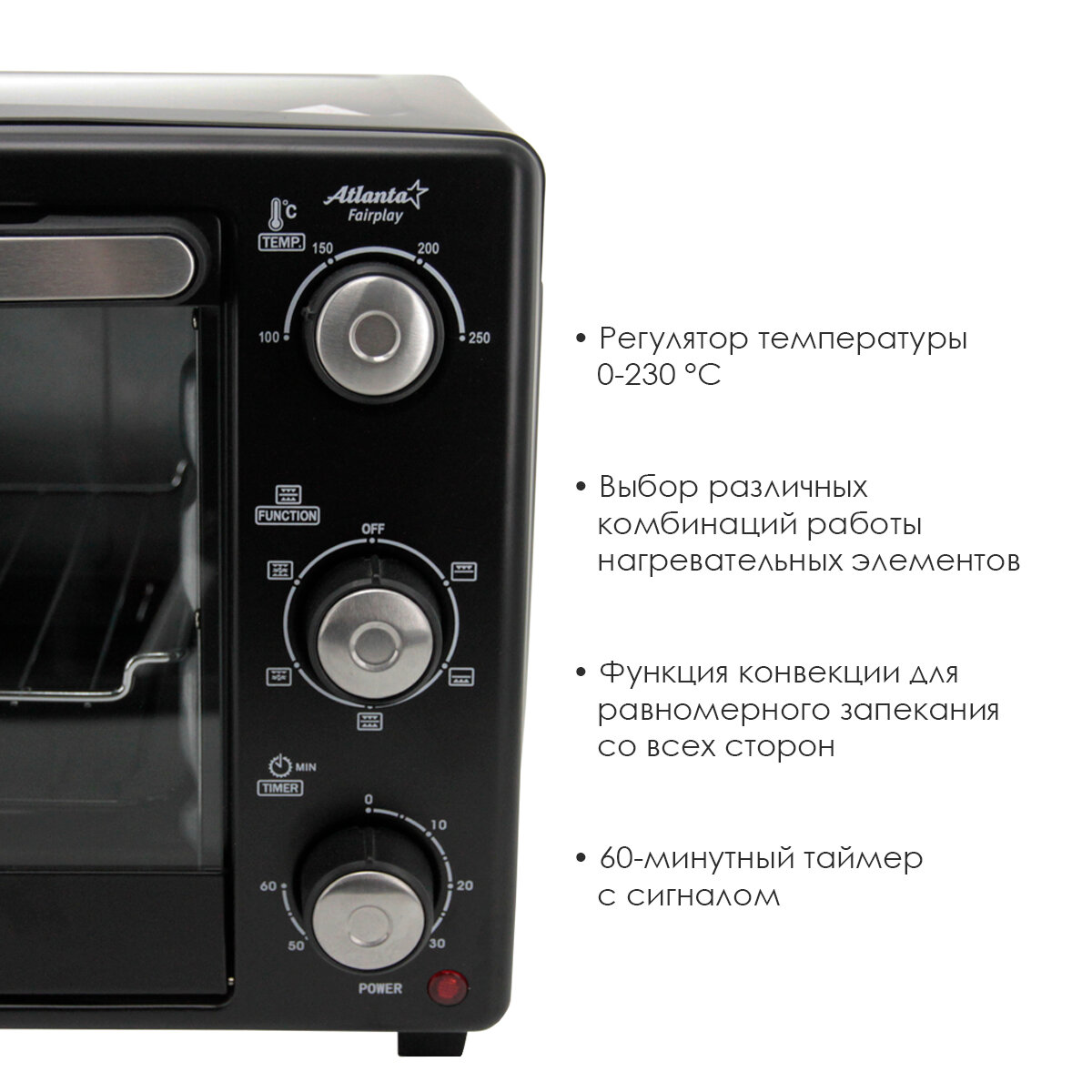 Мини печь Atlanta ATH-1407 (black), 1650 Вт, 30 л, конвекция, таймер с сигналом