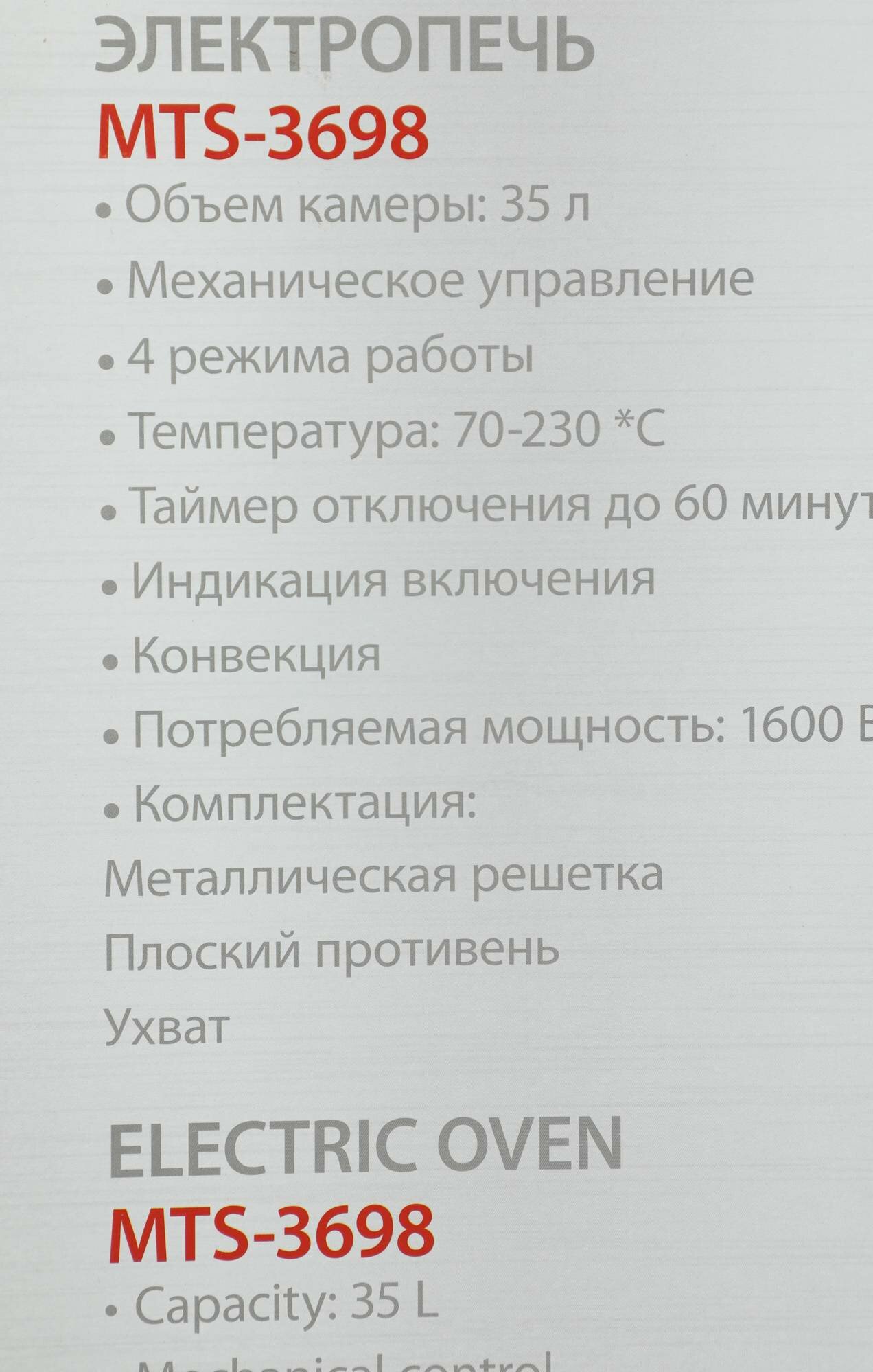 Мини-печь Supra MTS-3698 35л. 1600Вт черный интересное: