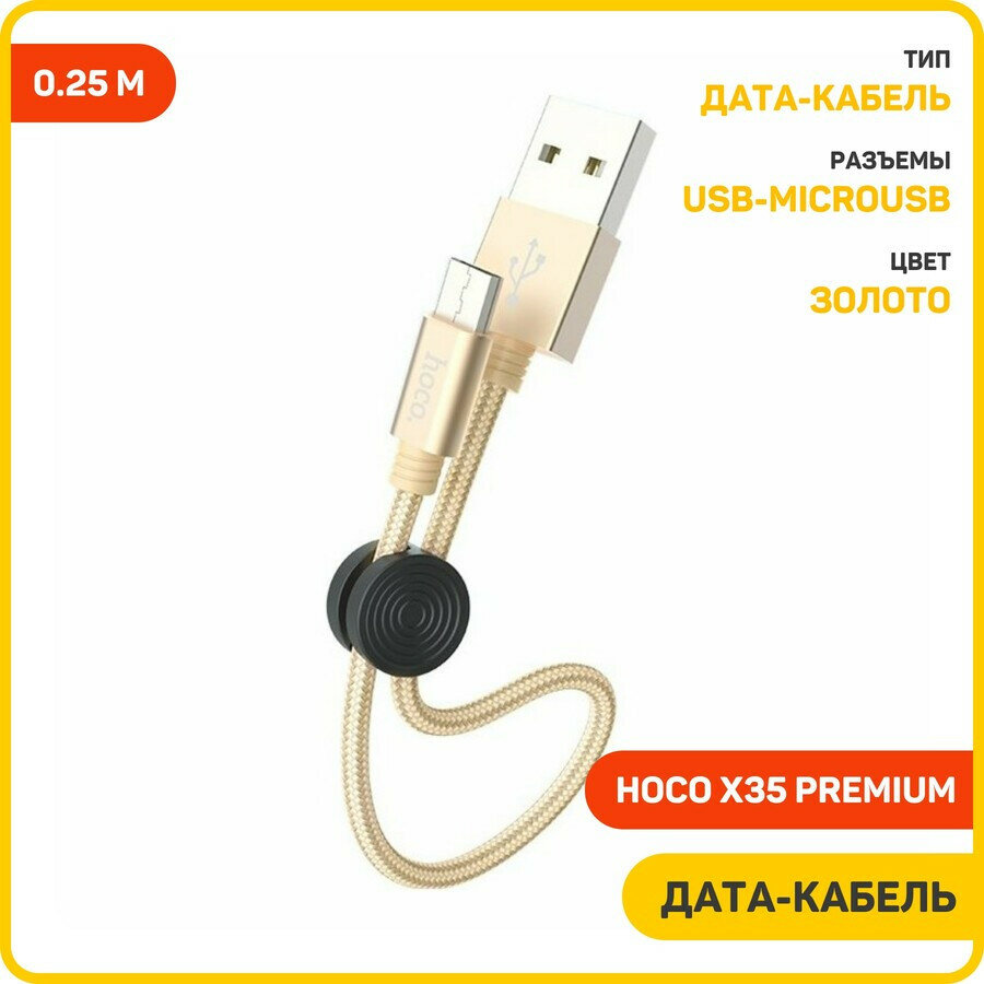 СохранитьДата-кабель Hoco X35 Premium USB-MicroUSB (2.4 A) 0.25 м, золото интересное: