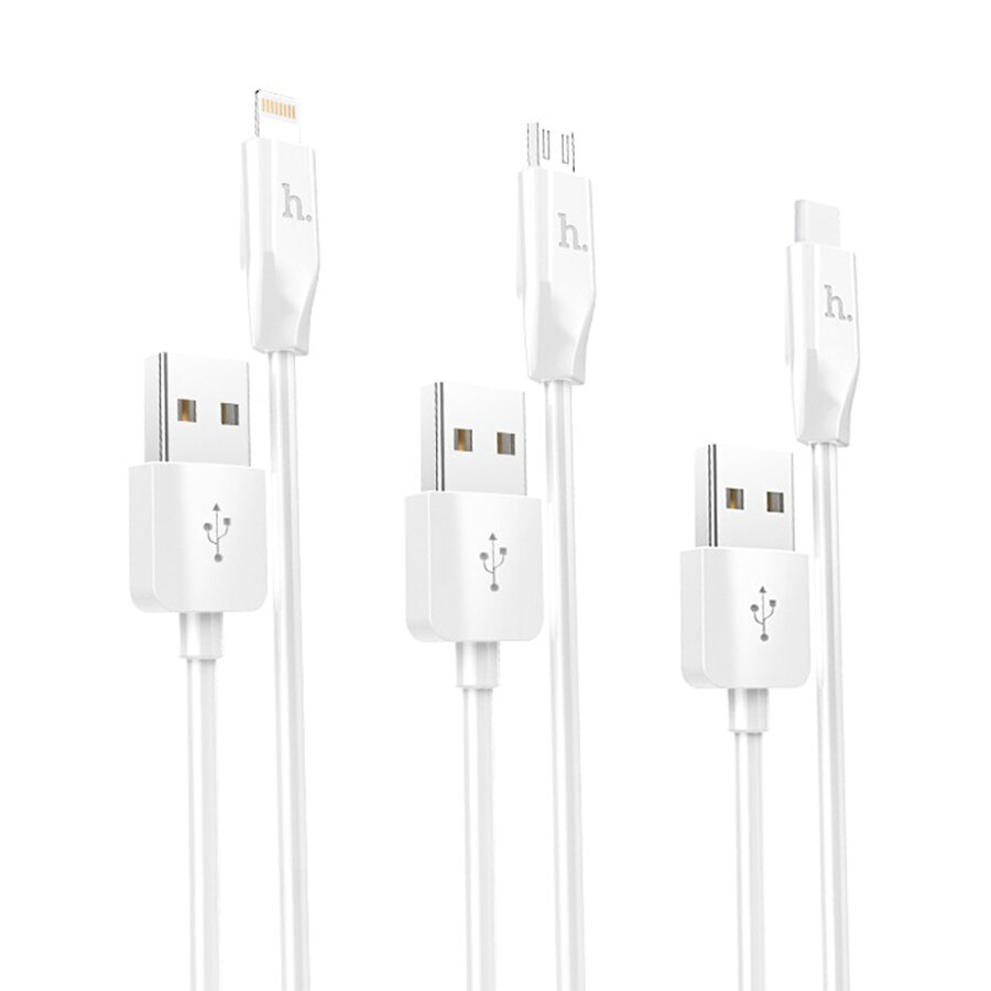 Кабель Hoco X1, microUSB/Lightning/Type-C - USB, 2.4 А, 1 м, белый