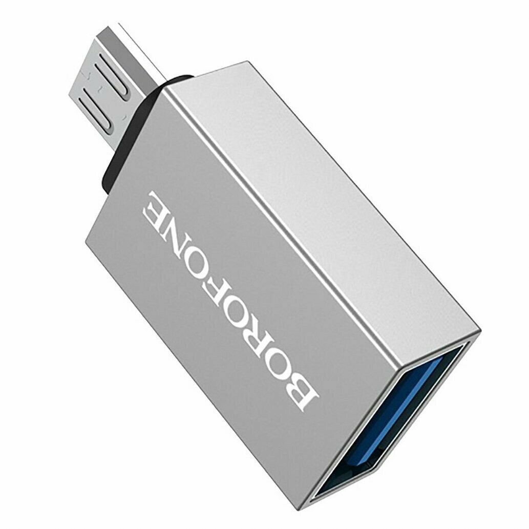 OTG адаптер BOROFONE BV2 USB-A/microUSB (серебряный)