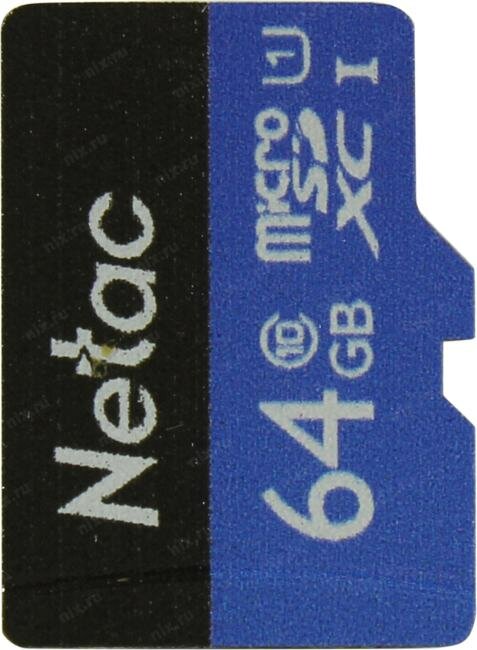 Карта памяти Netac microSD 64 ГБ Class 10, V10, A1, UHS Class 1, R 80 МБ/с, 1 шт., черный/синий