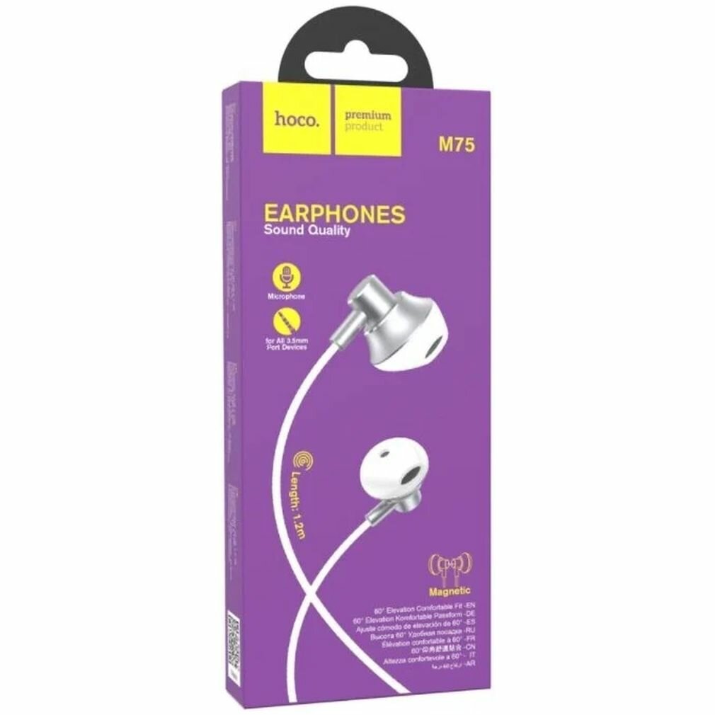 Купить Наушники Hoco M75, проводные, вкладыши, микрофон, Jack 3.5 мм, 1.2 м, серебристые