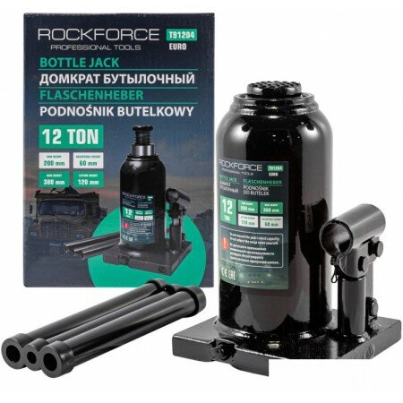 ROCK-FORCE RFT91204EURO Домкрат бутыочный 12т 200-380мм с капаном ROCKFORCE