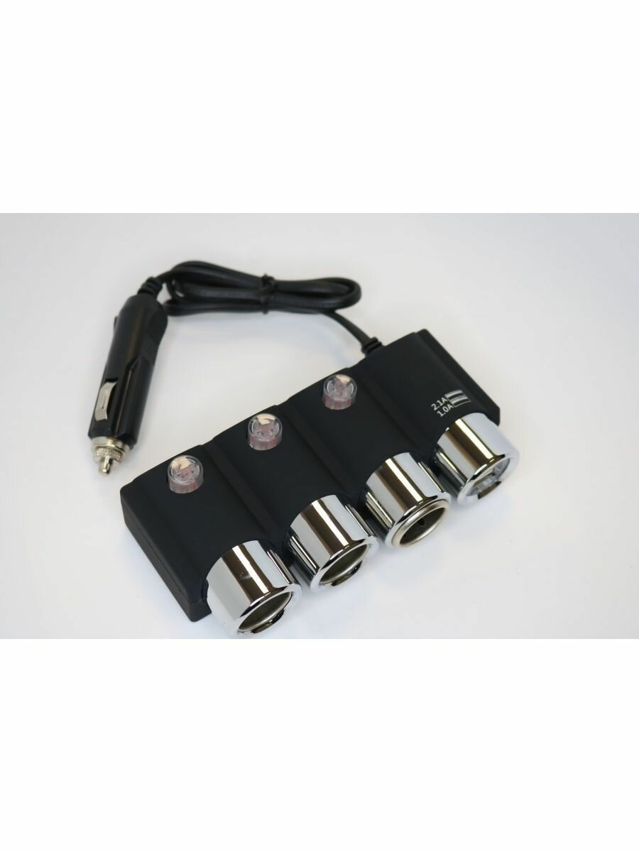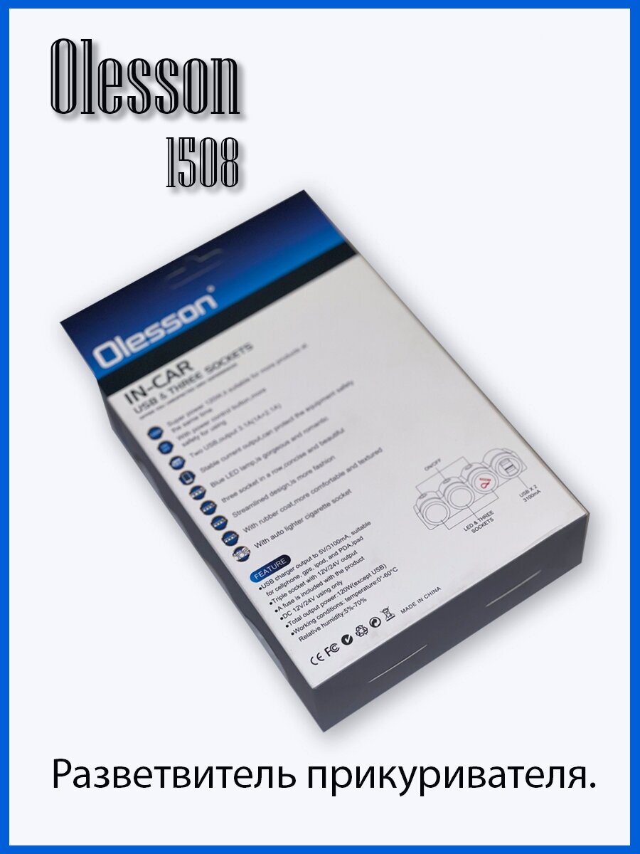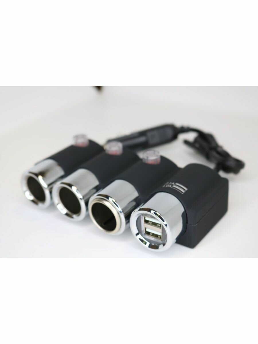 Разветвитель прикуривателя "Olesson 1508", шнуровой, с подсветкой, 3 гнезда, 2 USB-порта
