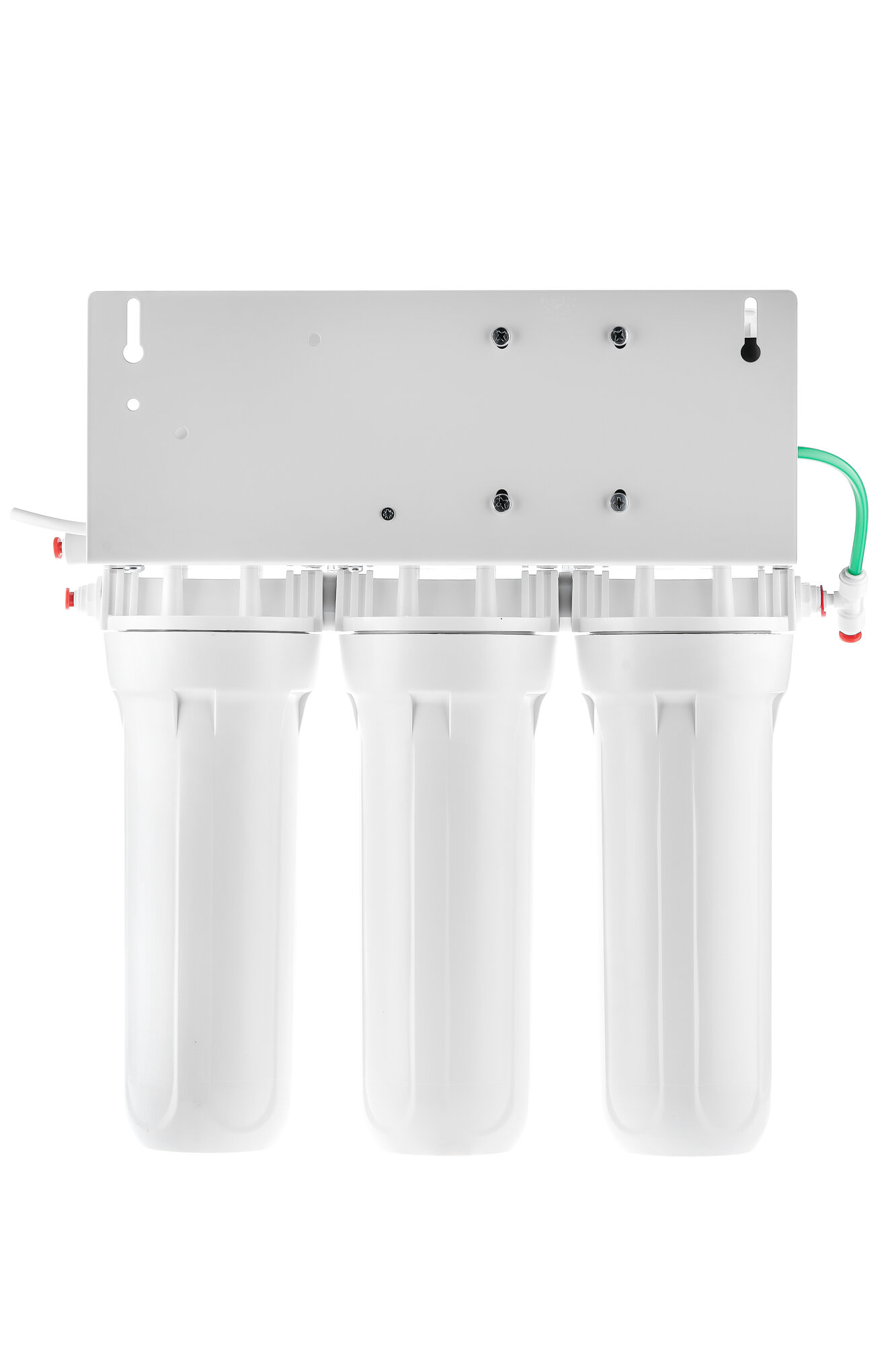 | Плюсы: | Осмос с помпой за относительно небольшие деньги. Система опрессована с завода. Компактный пластиковый бак. |