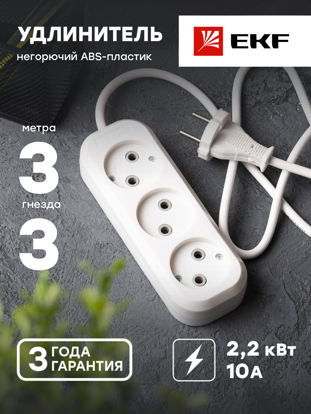 Ниже Вы можете прочитать отзывы на EKF PROxima Удлинитель "Эксперт" 3 гнезда 3 метра 10А/2,2кВт без заземления ПВС 2х0,75, ознакомится с подробными характеристиками, посмотреть интересные обзоры и фотографии на EKF PROxima Удлинитель "Эксперт" 3 гнезда 3 метра 10А/2,2кВт без заземления ПВС 2х0,75.