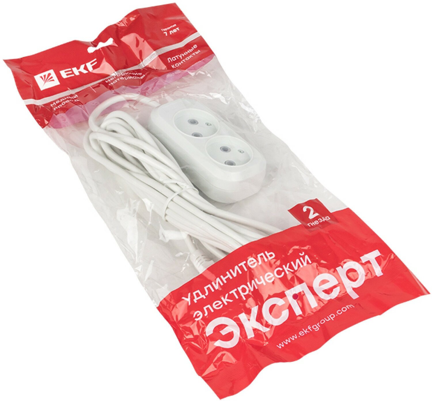 Удлинитель Эксперт 2 гнезда 5 метров 10А-2,2кВт без заземления ПВС 2х0,75 EKF PROxima интересное: