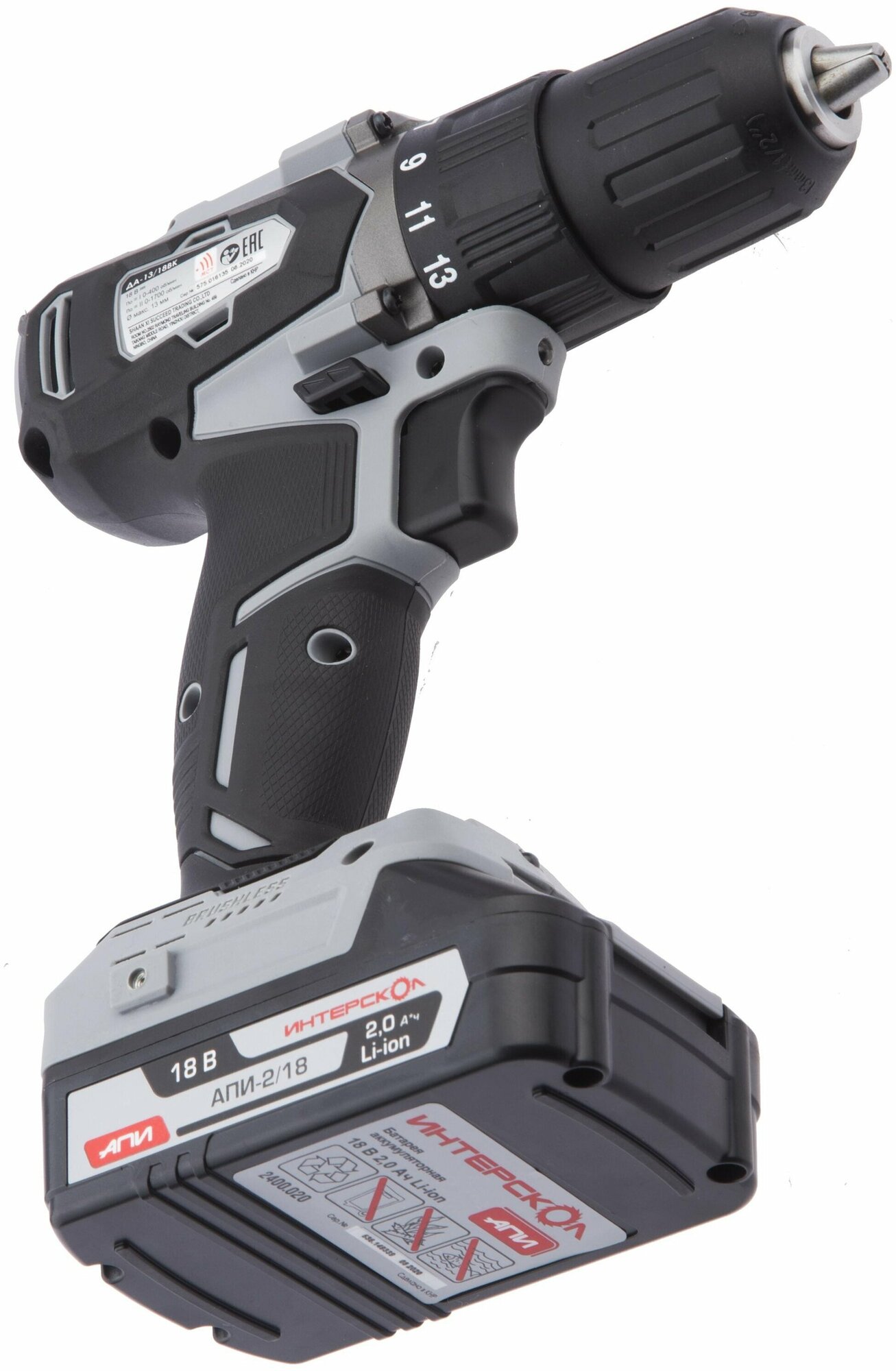 Бесщеточная аккумуляторная дрель-шуруповерт ИНТЕРСКОЛ ДА-13/18ВК 575.0.0.70, кейс, АПИ, без АКБ и ЗУ