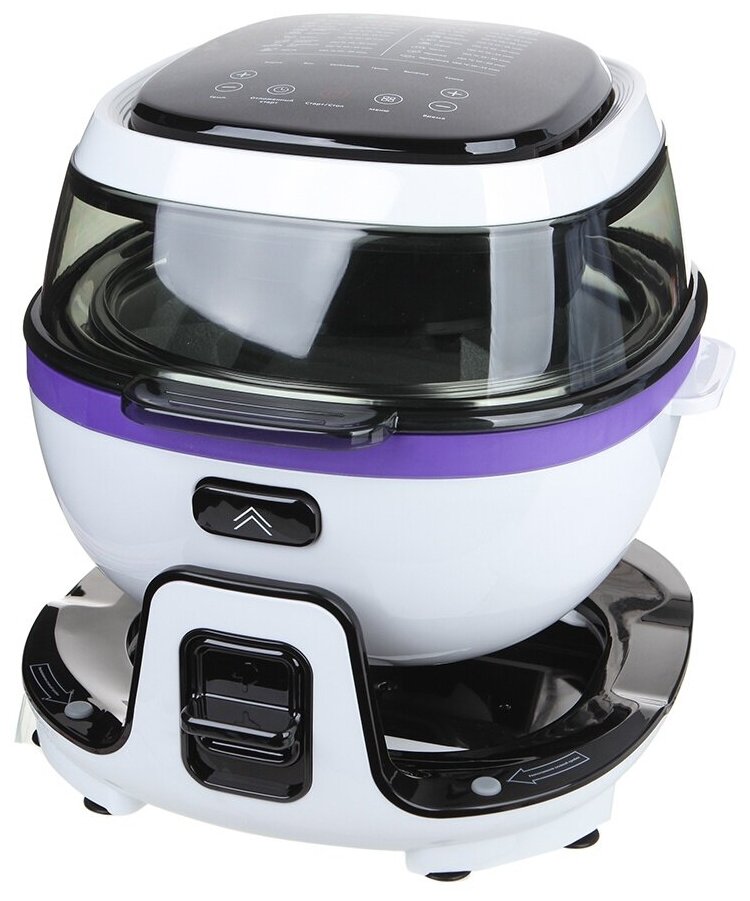 | Плюсы: | Потрясающий дизайн, одна из не многих моделей с вращающейся емкостью, а изменение угла вращения позволяет равномерно обжаривать продукты. |