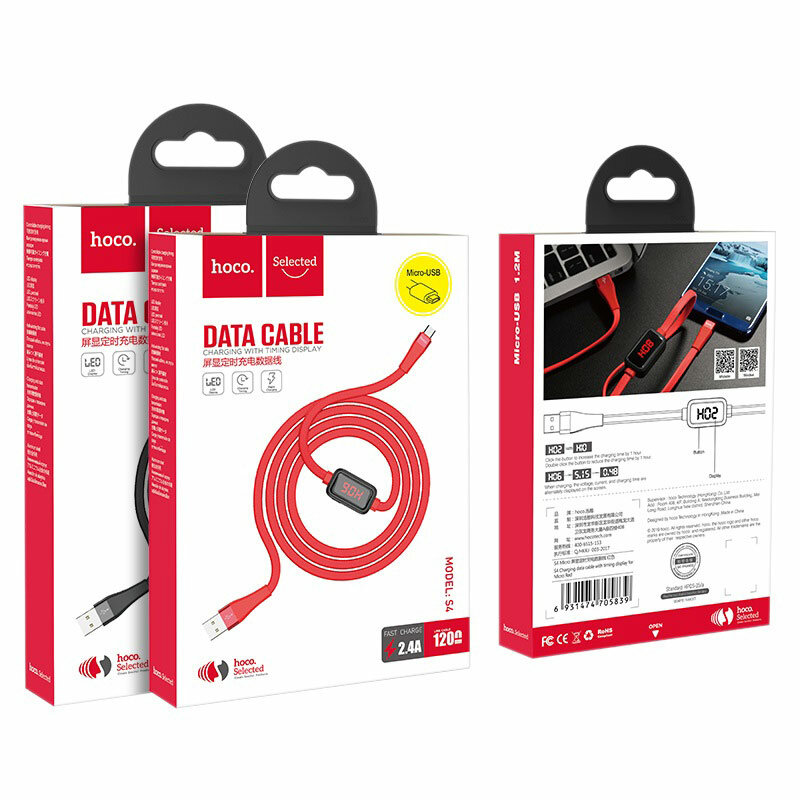USB Кабель Micro, HOCO, S4 with timing display, черный интересное: