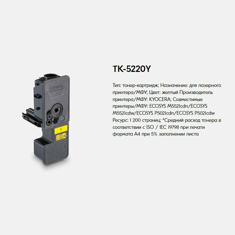 Картридж Kyocera TK-5220Y для Kyocera P5021cdn/cdw P5026cdn/cdw M5521cdn/cdw M5526cdn/cdw желтый 1200стр