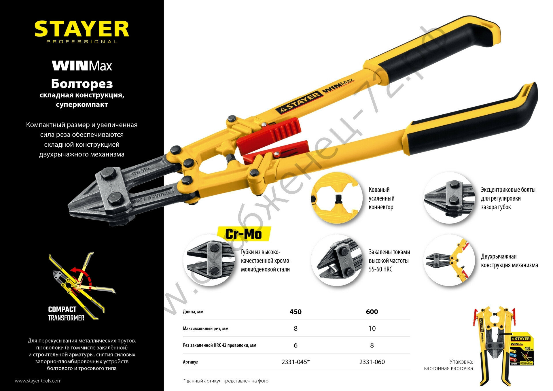 Болторез STAYER "WINMax", 2331-060, 600мм, губки Cr-Mo, Проволока до 11мм