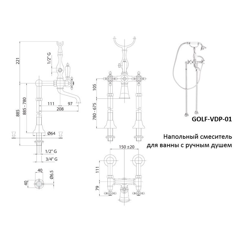Напольный смеситель для ванны Cezares GOLF-VDP-01-Bi, хром/белый интересное: