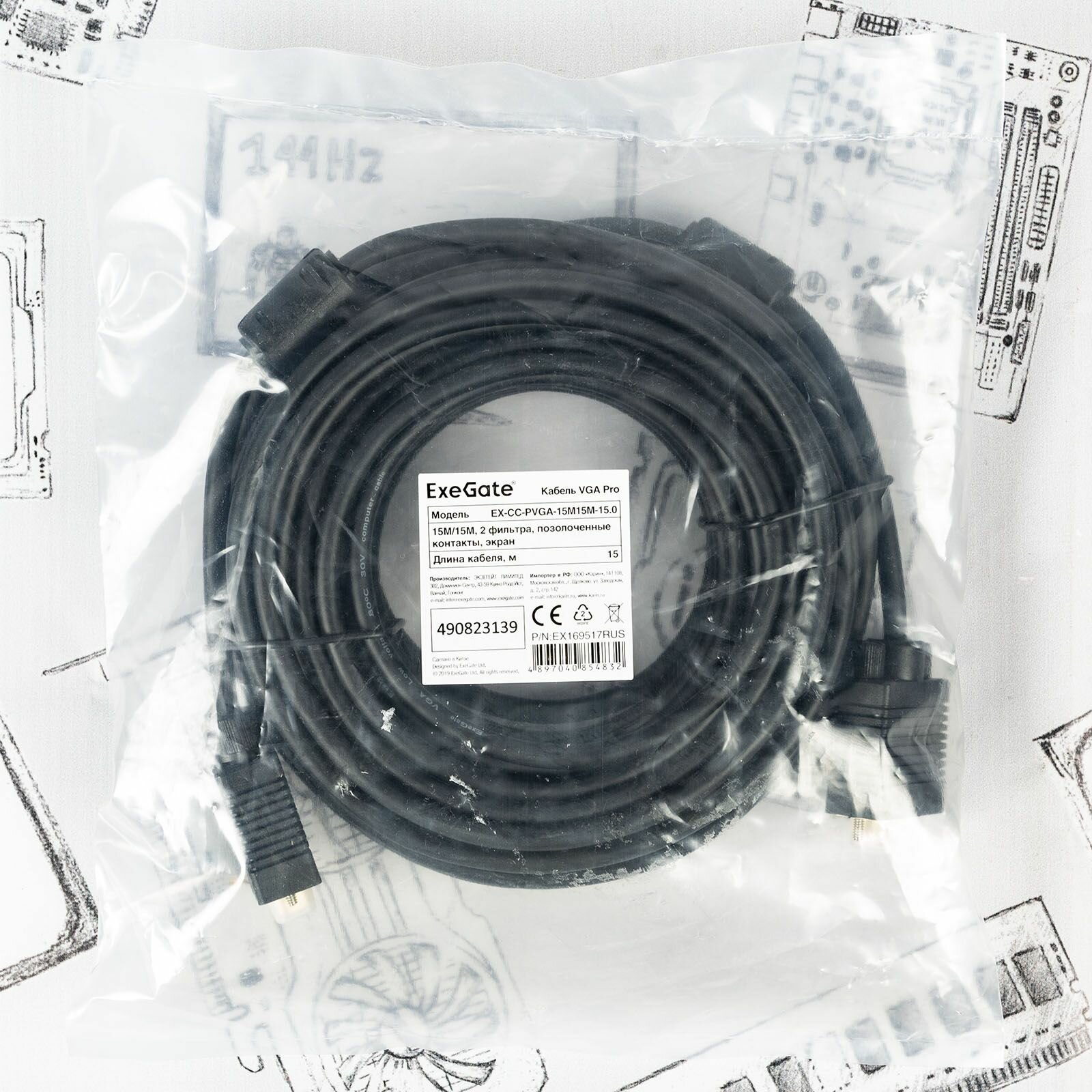 Кабель ExeGate VGA - VGA (EX169517RUS), 15 м, черный