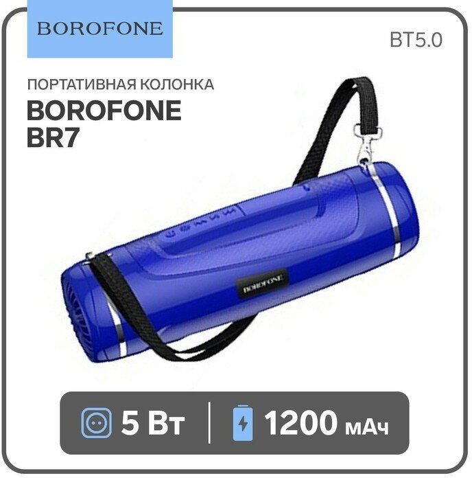 Портативная колонка Borofone Br7, 5 Вт, 1200 мАч, Bt5.0, фонарик, синяя Borofone 9074756