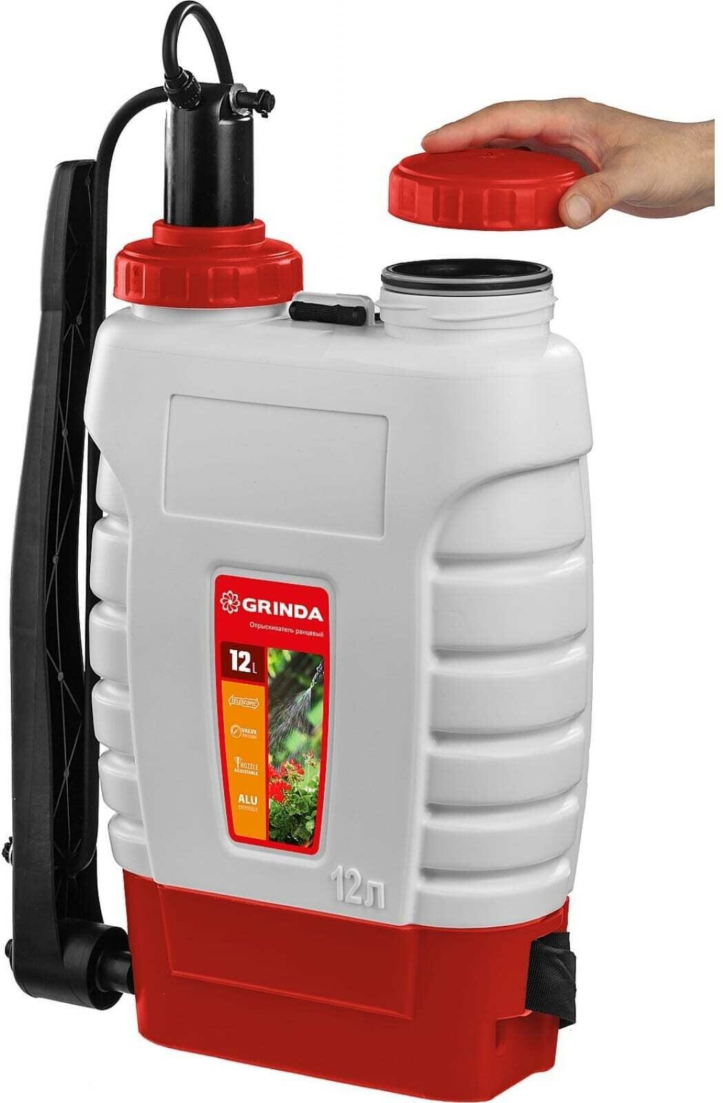 Ранцевый опрыскиватель GRINDA KS-12, 12 л, телескопический алюминиевый удлинитель 425217