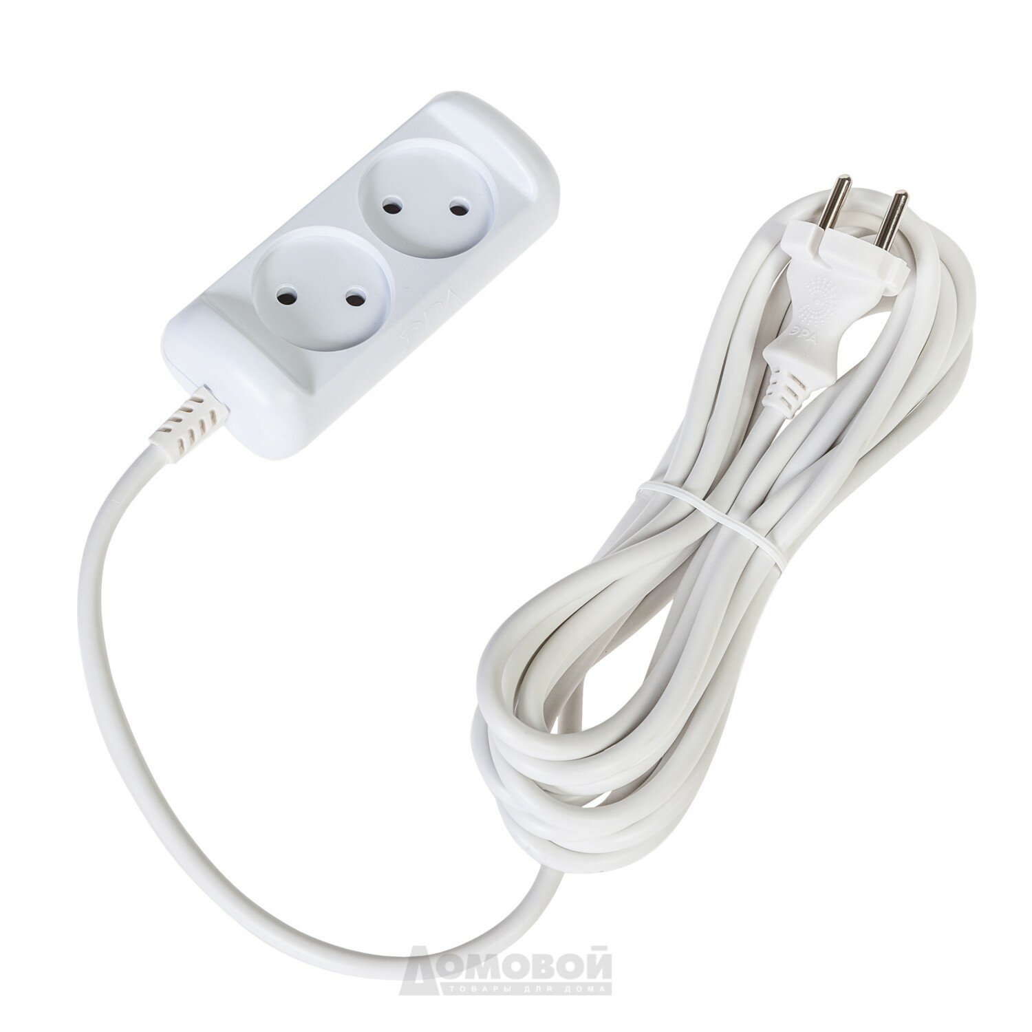 Удлинитель 2гн без З/К 5м белый 10А ПВС 2х1 U-2-5m ЭРА (1/10/840)