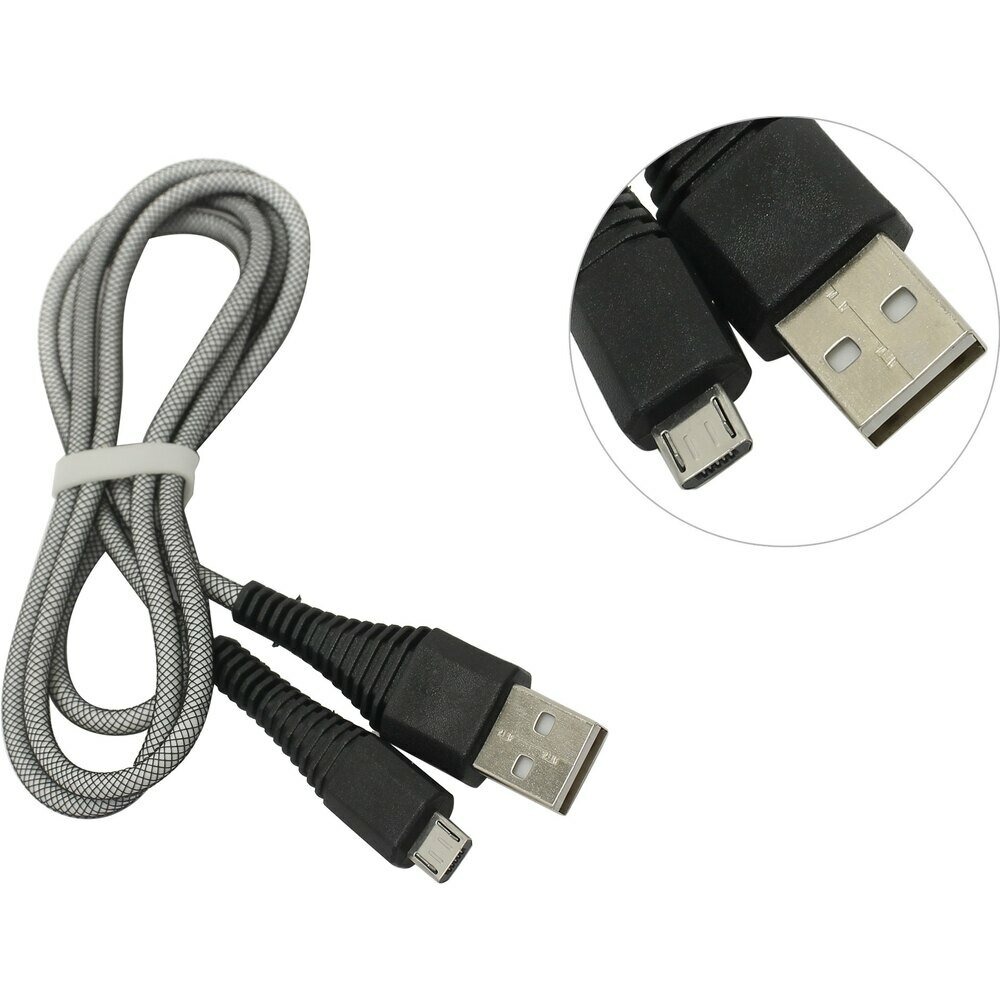Кабель Smartbuy Сarbon, USB2.0 (A) - microUSB (B), экстрапрочный, 2A output, 1м, белый (арт. 321356)