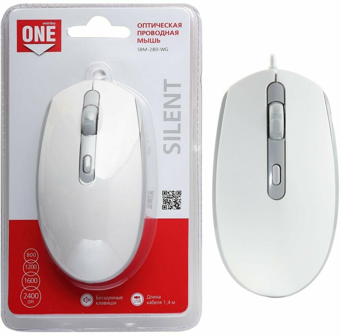 Мышь проводная Smartbuy ONE 280 USB/DPI 800-1200-1600-2400/4 кнопки/1.4м бело-серая (SBM-280-WG)