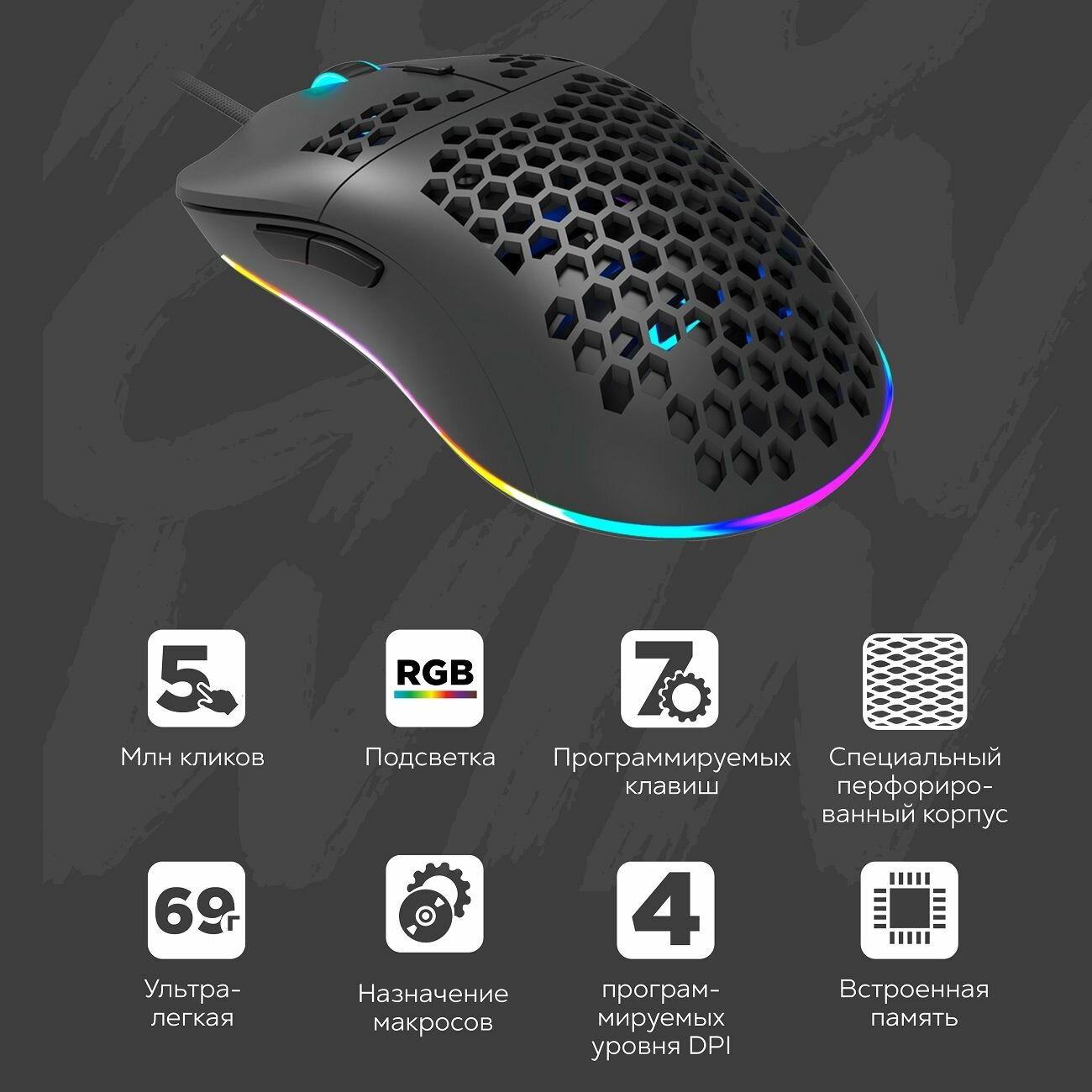 Выглядит необычно, красивая мышь. Однако трипофобам не подойдет. Подсветка регулируется. 2. Легкая |