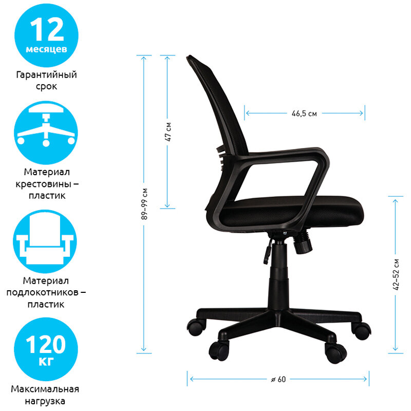 Кресло Бюрократ CH-1201NX черный 10-11 крестовина пластик