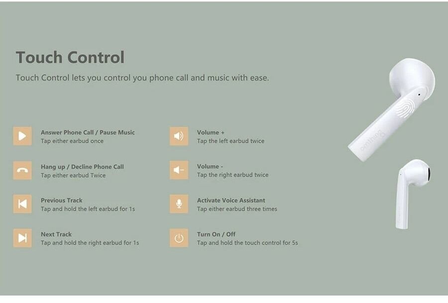| Плюсы: | Хороший звук, удобно сидят в ушах, сенсорное управление. |