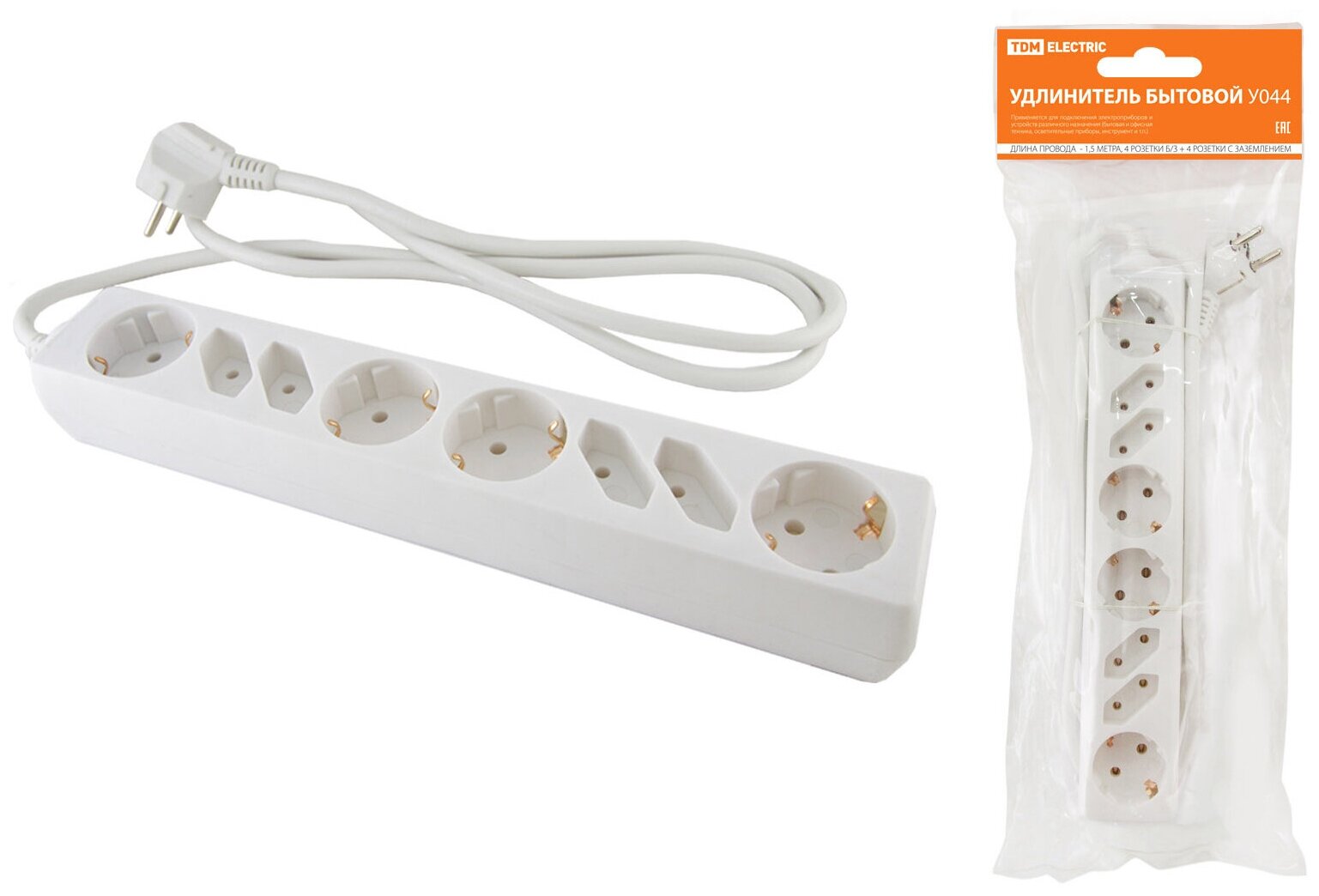 Удлинитель бытовой У044, 4 б/з+4 с/з, 1,5метра, ПВС 3х1,5мм2 16А/250В, TDM SQ1303-0310 (1 шт.) интересное: