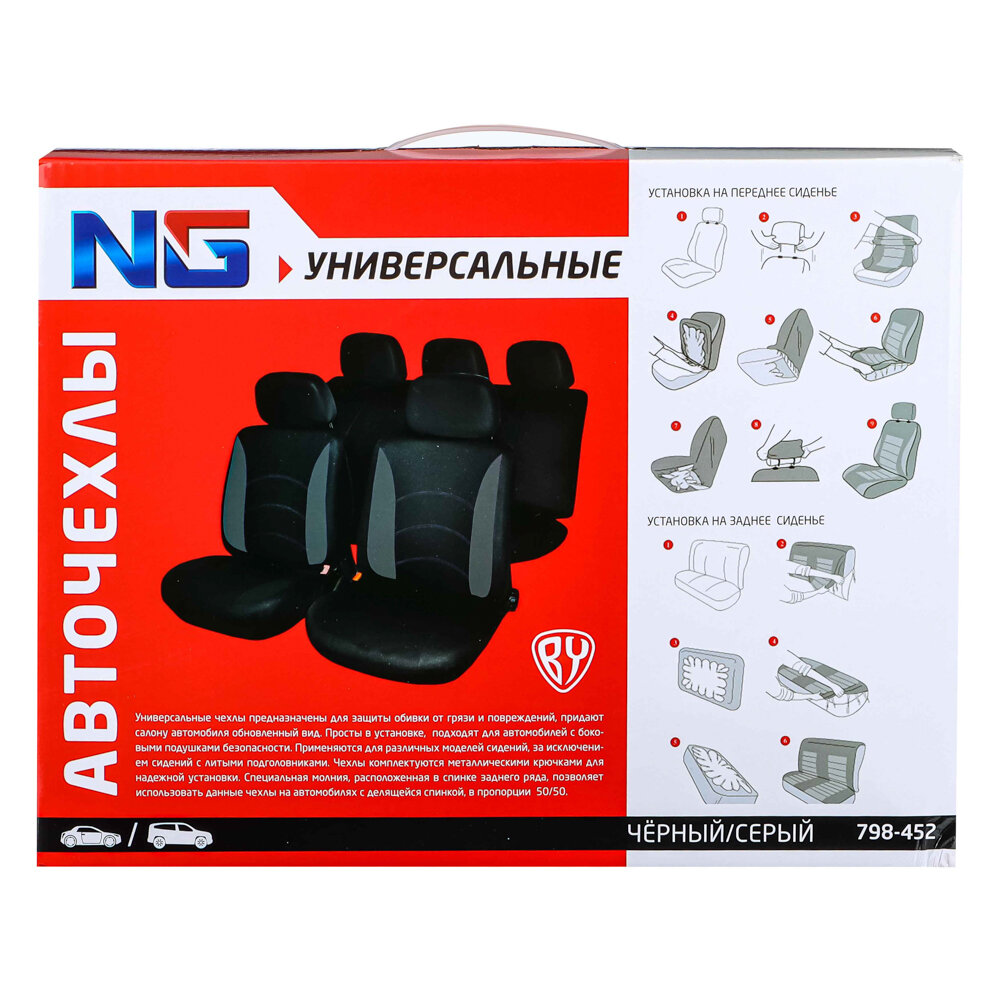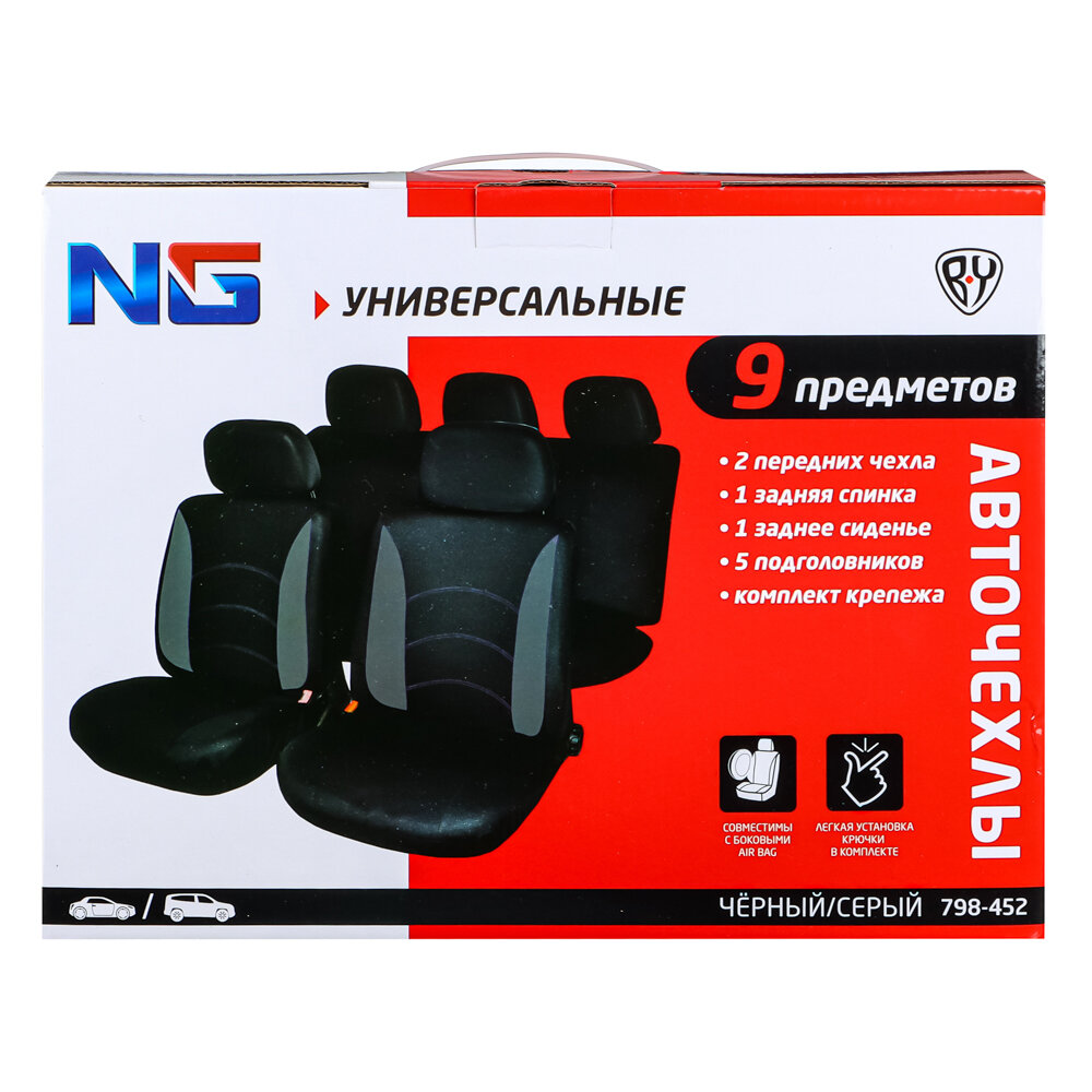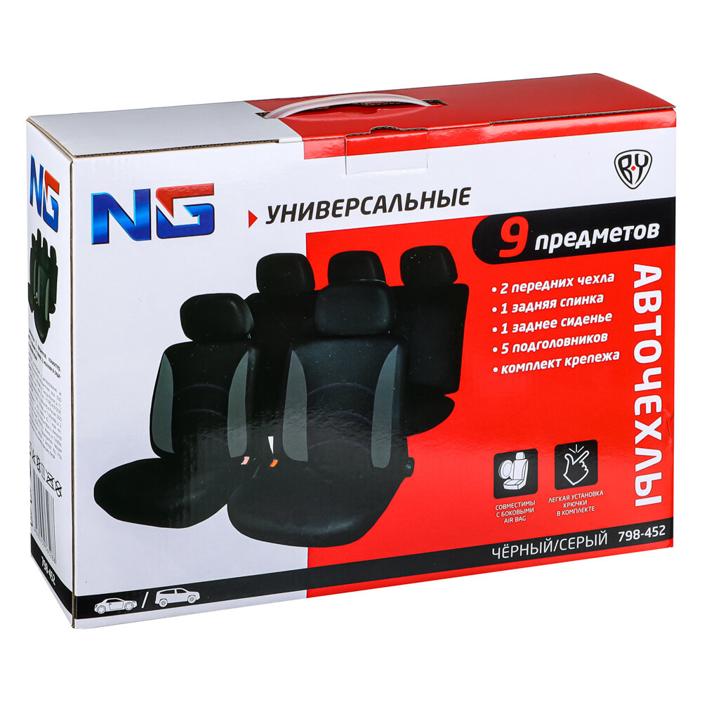 NG Авточехлы 9 пр., полиэстер, Гамма, 3 молн. в спинке, 3 молн. в сидении, черный/серый