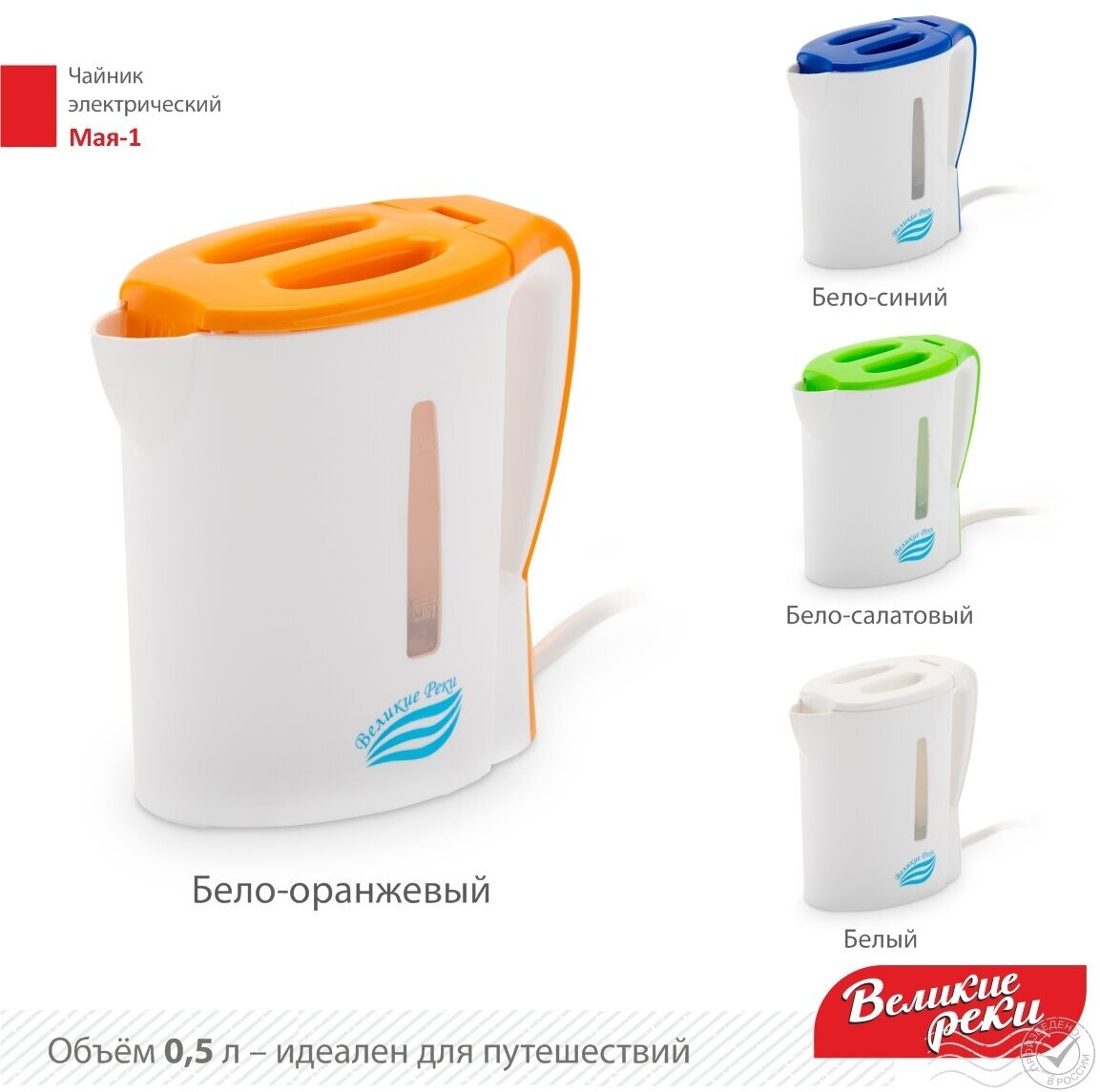 Купить Чайник электрический великие реки Мая-1 бело-оранжевый, 0,5 л 1289458