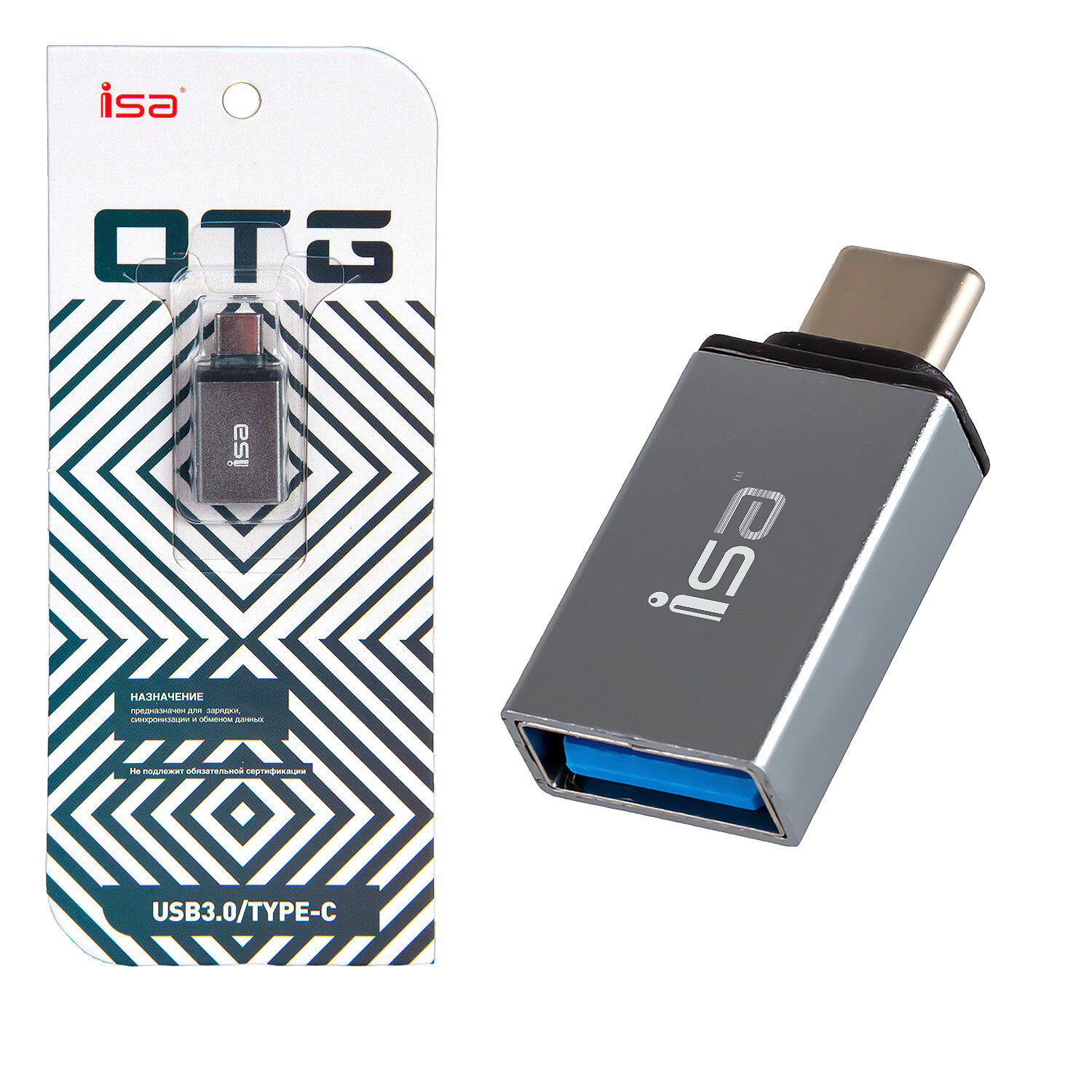 Переходник адаптер USB 3.0 на Type-C, ISA G-01, OTG, серебристый