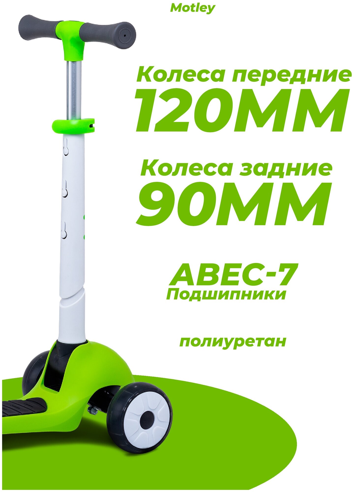 Самокат 3-колесный Ridex Motley, 120/90 мм, белый/зеленый