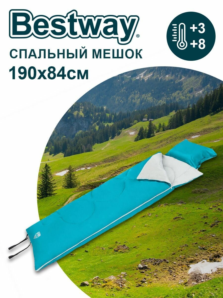 Спальный мешок одеяло, 190х84 см, 3 °C, 8 °C, 2 слоя, полиэстер, холлофайбер, Bestway, 68100