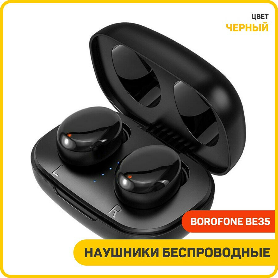 Наушники беспроводные Borofone BE35, вакуумные, TWS, микрофон, BT 5.0, 45/280 мАч, черные