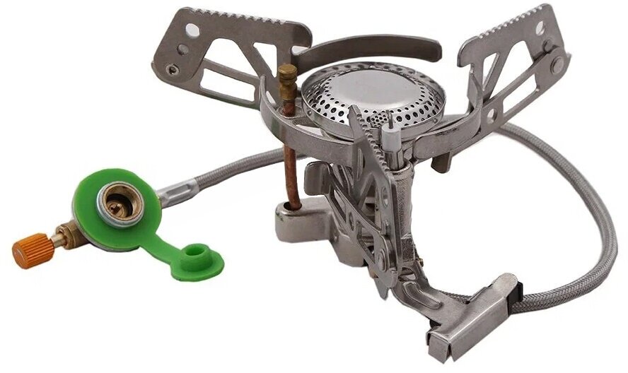 Туристическая газовая горелка с пьезоподжигом с подогревом газа газогенератором, горелка перевертыш