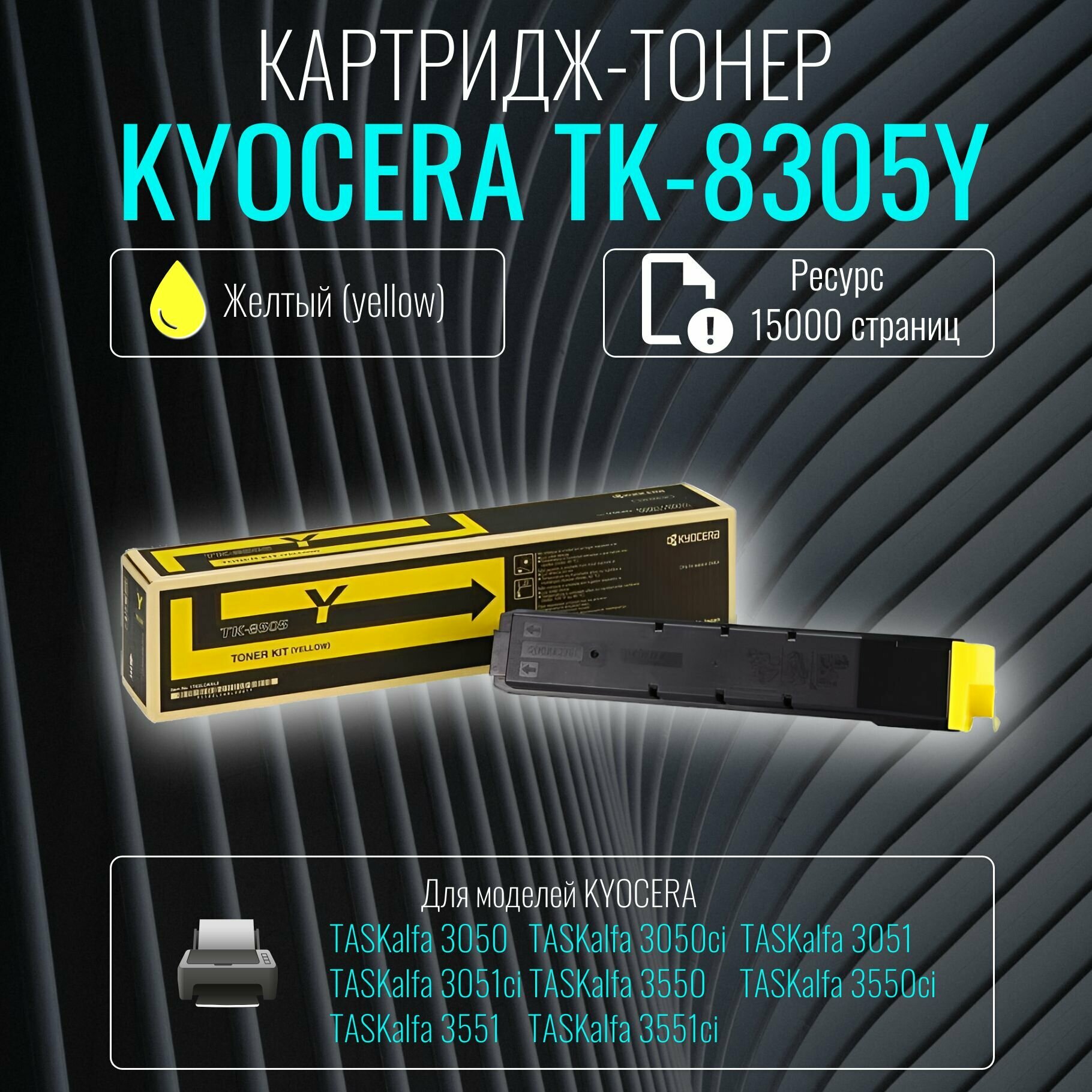 Тонер-картридж Kyocera TK-8305Y 1T02LKANL0 для TASKalfa 3051ci/3551ci/3050ci/3550ci (15 000 стр.) Yellow 15 000 стр.