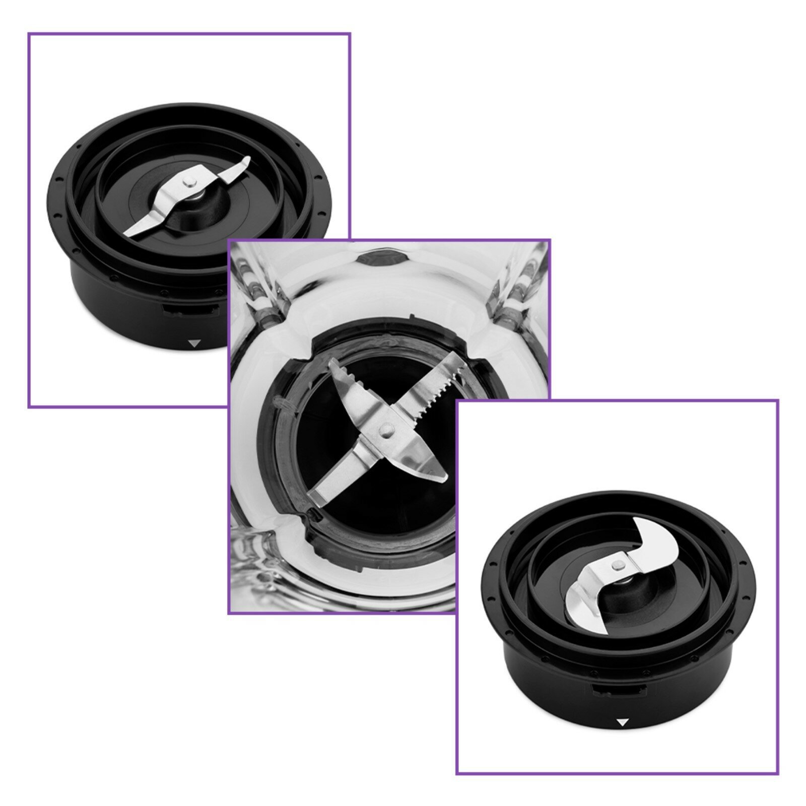 | Плюсы: | Шикарный блендер. Чаша + 2 измельчителя, включая кофемолку. Элементарное и удобное управление, есть импульсный режим. Блендер на антивибрационных ножках. |