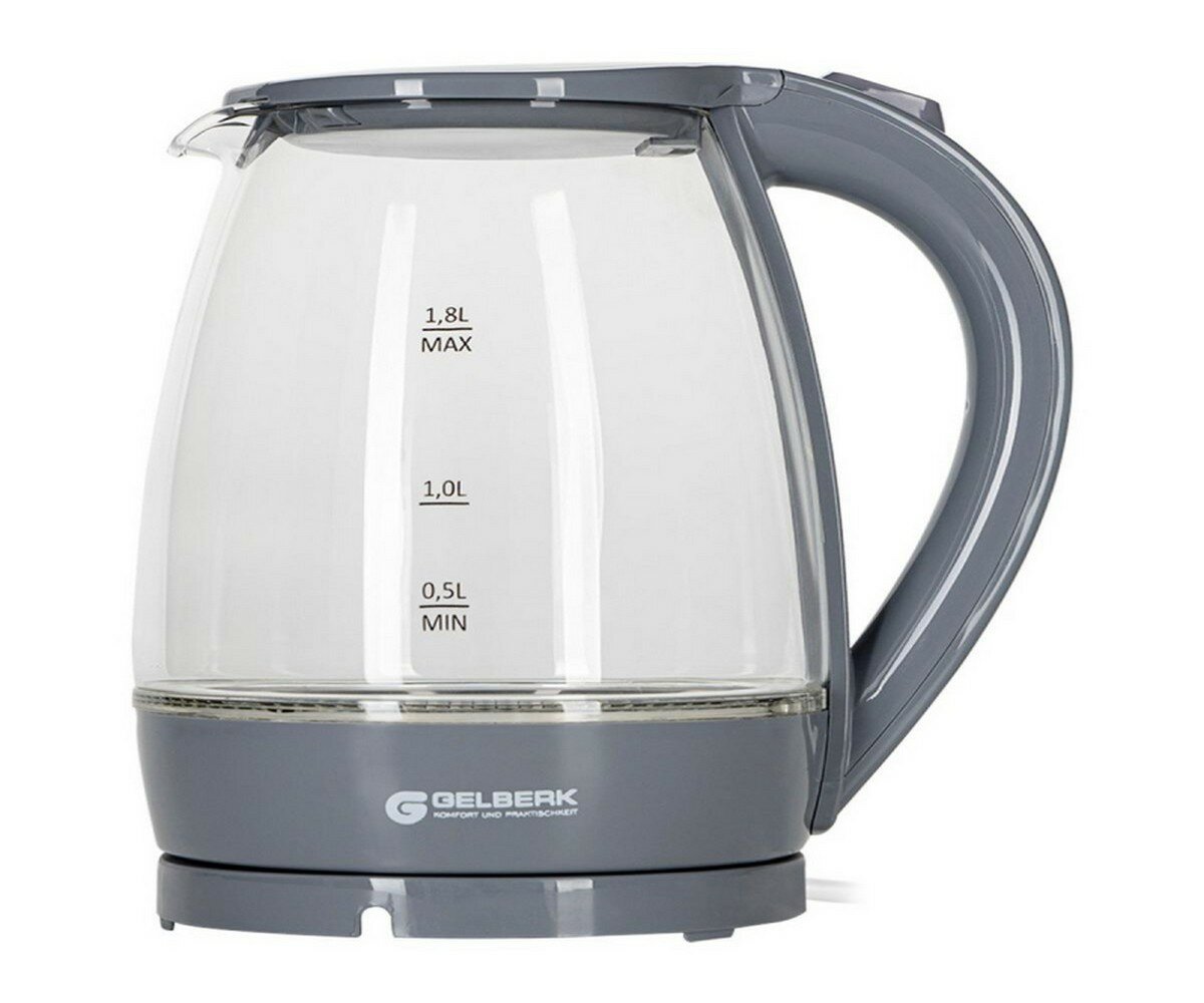 Чайник GELBERK GL-473 серый, 1,8л., стекло