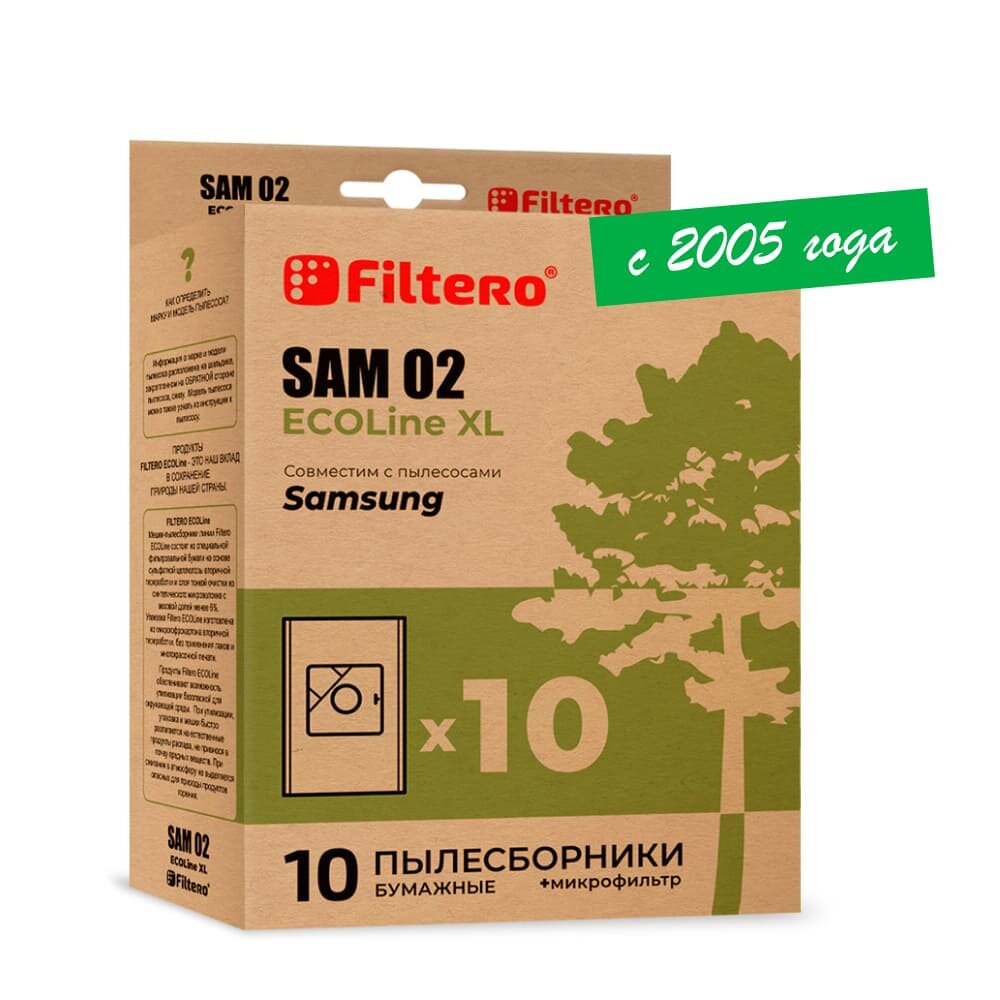 Filtero SAM 02 ECOLine XL, Мешки - пылесборники для пылесосов SAMSUNG, бумажные (комплект: 10 штук + фильтр)