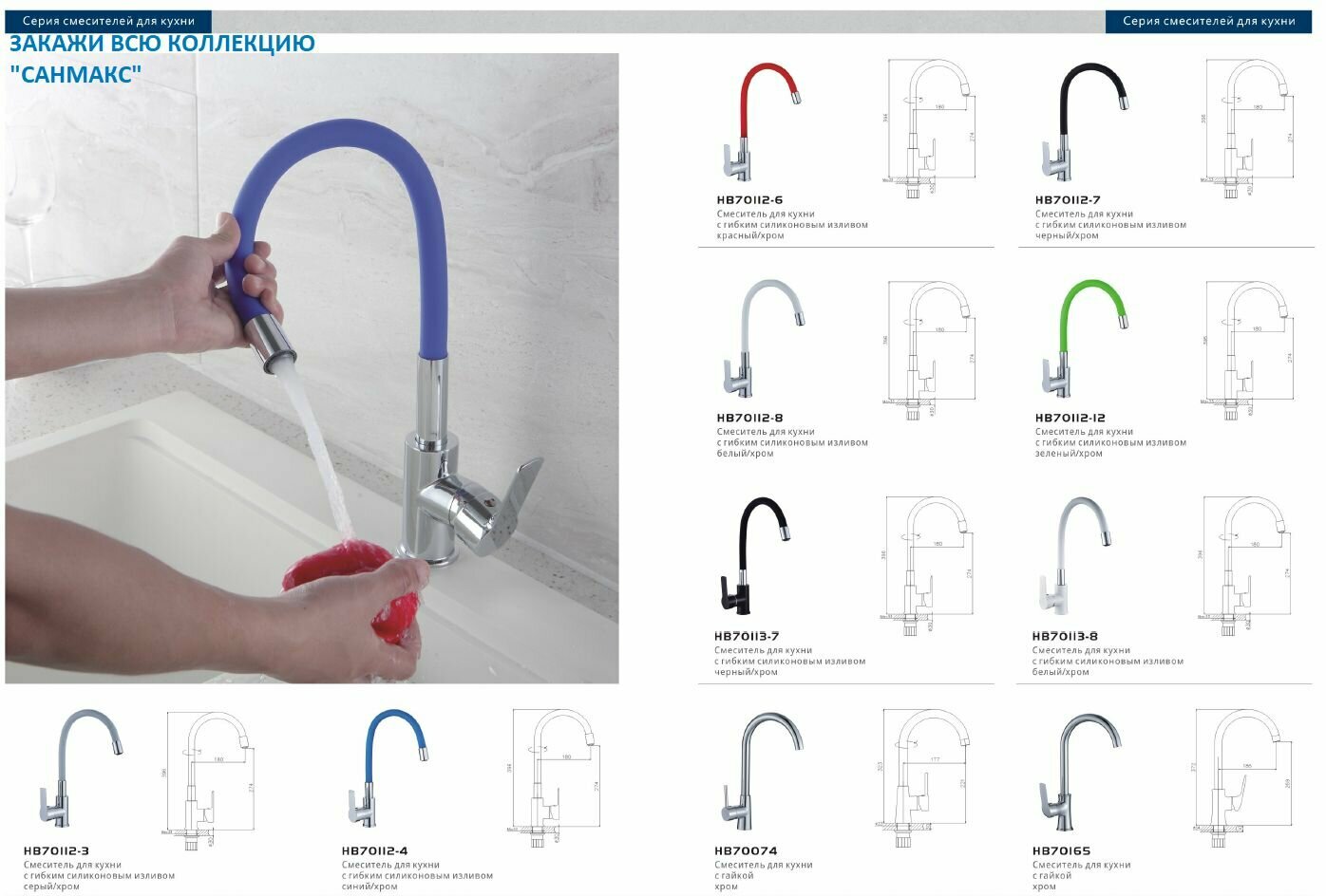 Смеситель для кухни Haiba с гибким изливом, синий/хром (HB70112-4)