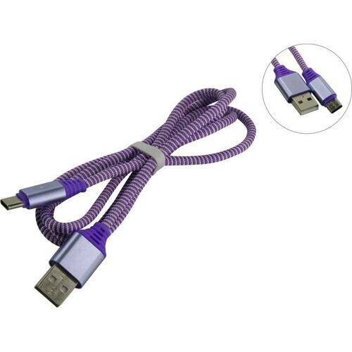 Кабель SmartBuy iK-3112NS, USB 2,0 A-Type C, в оплетке, 2A output, 1 м (iK-3112NS violet)