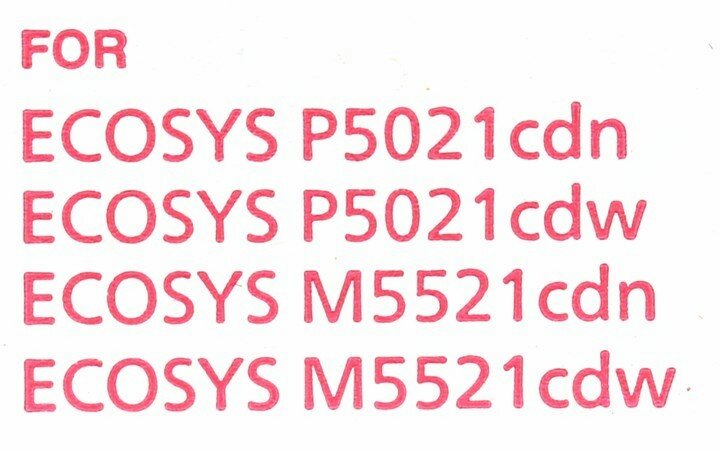 | Совместимые принтеры | ECOSYS M5521cdw, ECOSYS M5521cdn, Kyocera ECOSYS P5021cdn, Kyocera ECOSYS P5021cdw |