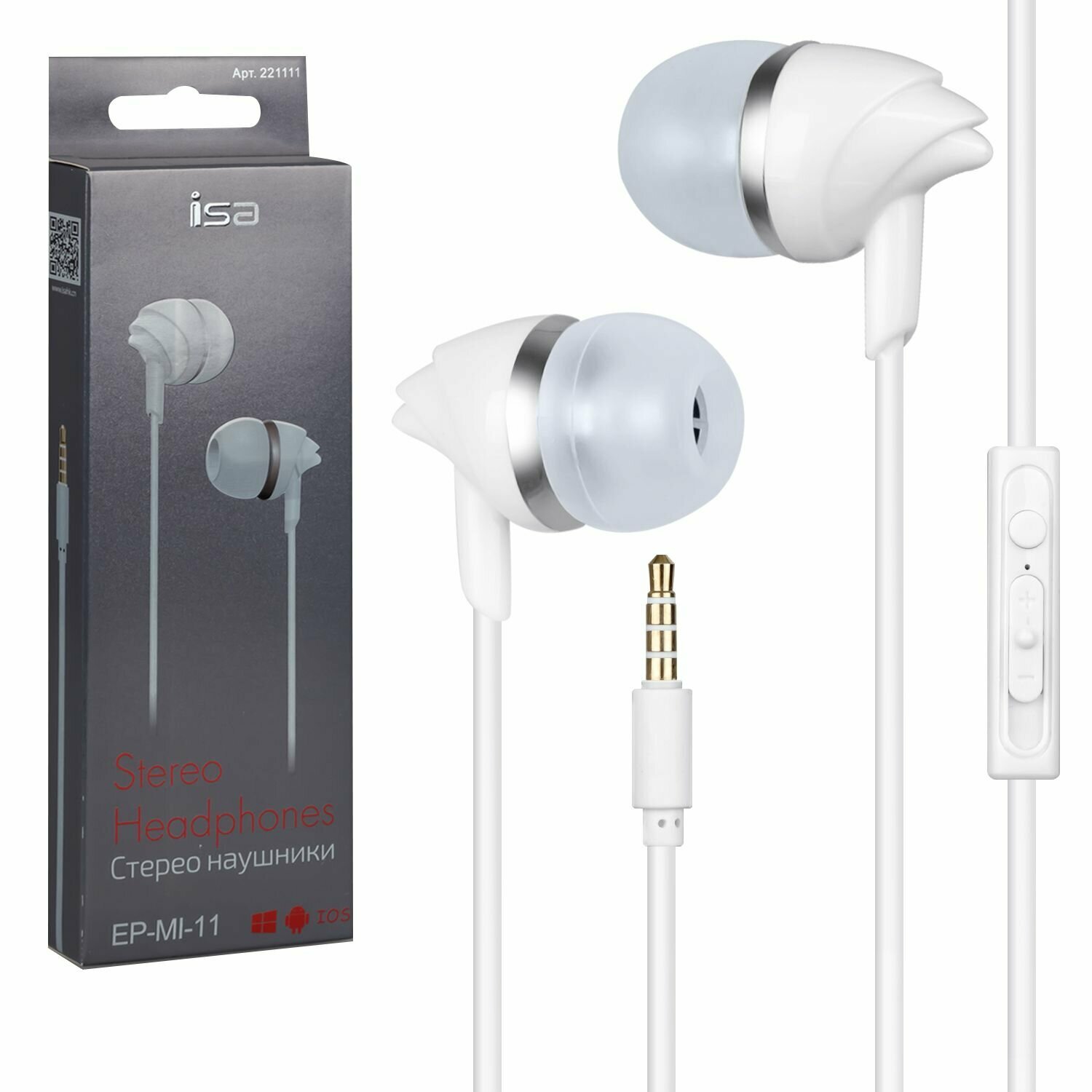 Купить Наушники EP-MI-11 с микрофоном ISA белые