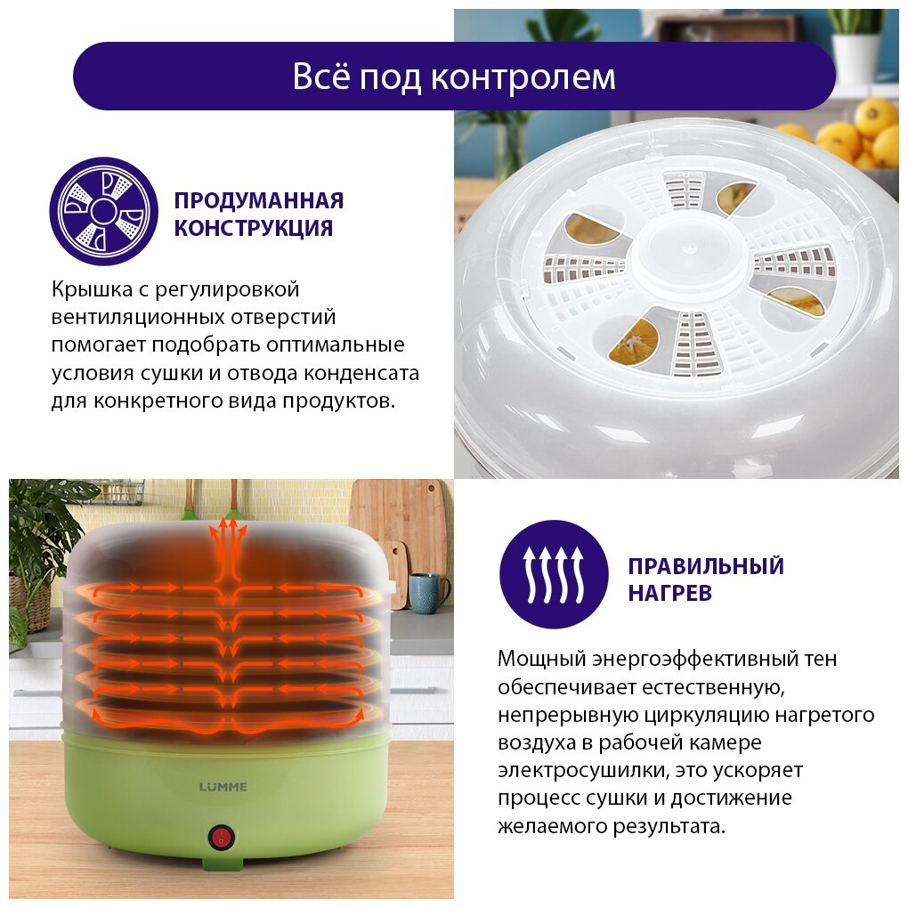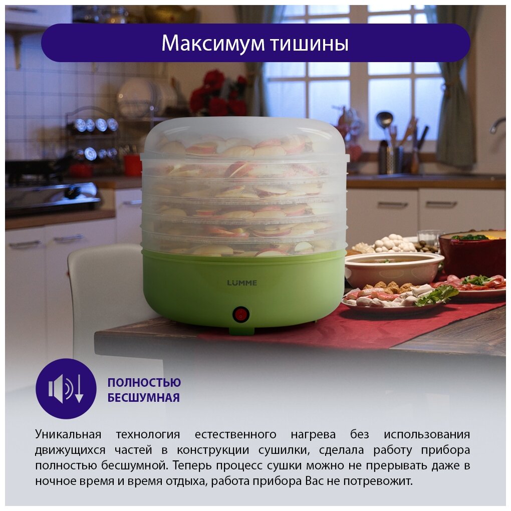 СохранитьСушилка LUMME LFD-105PP 5 поддонов зеленый нефрит д/фруктов, овощей интересное: