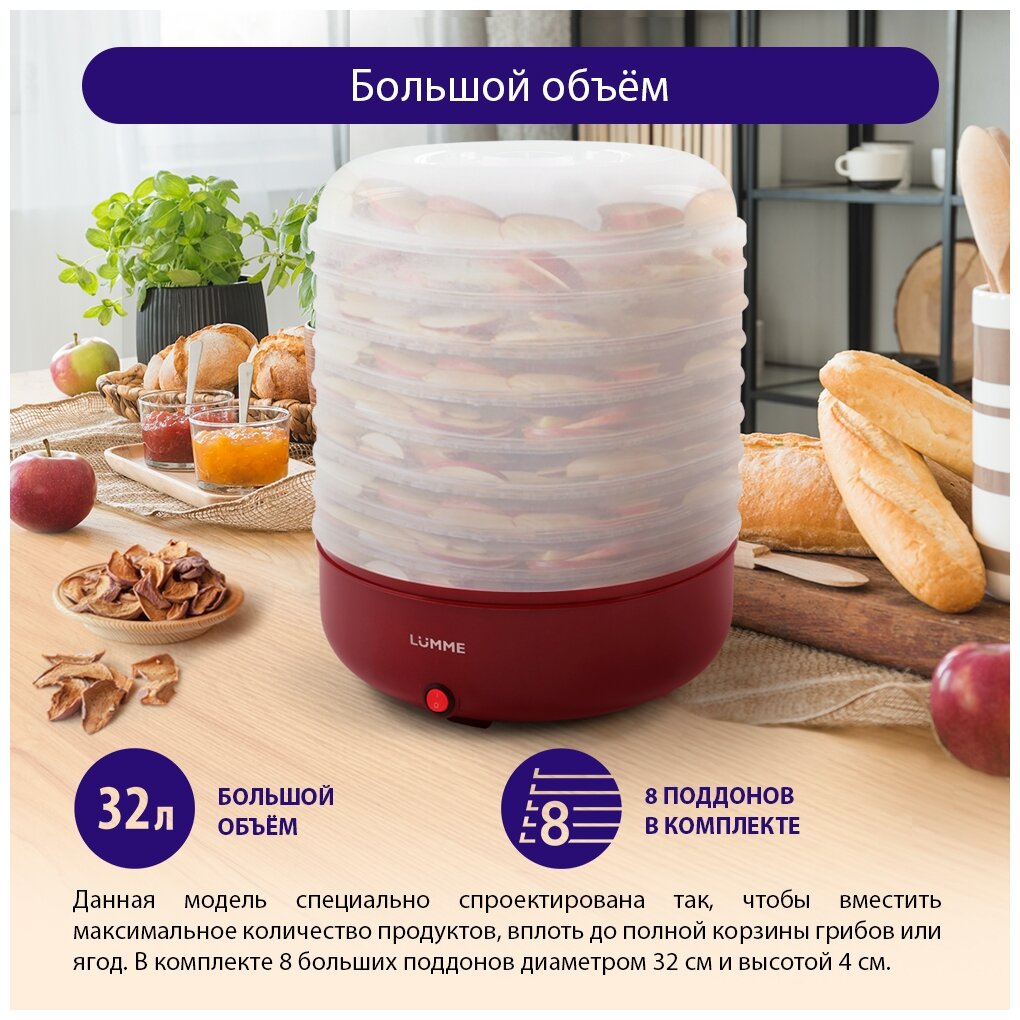 LUMME LFD-108PP 8 поддонов бордовый гранат сушилка д/фруктов,овощей