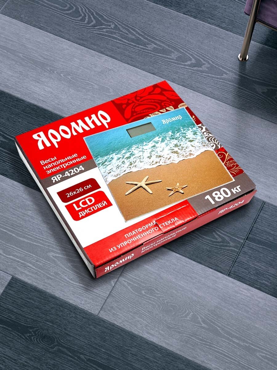 Весы напольные электронные яромир ЯР-4204 "Песчаный пляж": 180 кг, 26*26см (10)