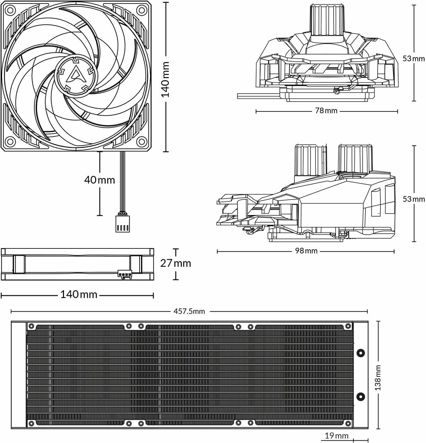 Система охлаждения жидкостная ARCTIC Liquid Freezer II 420 A-RGB ACFRE00109A Black Multi Compatible All-In-One CPU Water Cooler